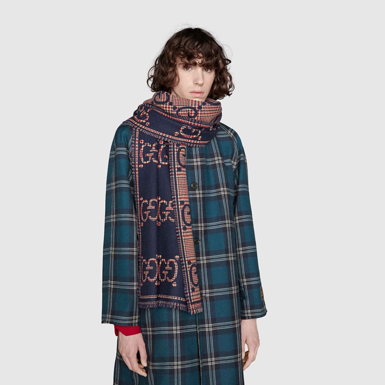 Style 660025 4G386 4174 Part of The House’s codes first presented during The ‘30s, The distinctive GG motif has been The inspiration For New explorations of expression For almost a century. Here it’s presented in an exaggerated version on This wool scarf.