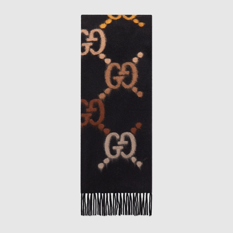 - Black wool stole With brown GG
