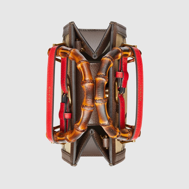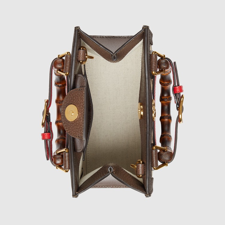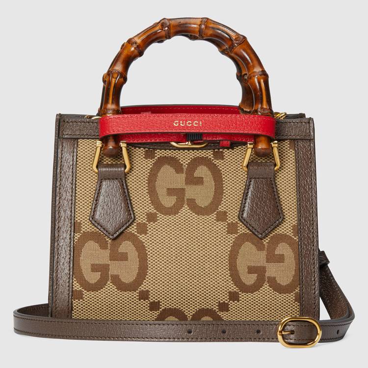Style 655661 UKMFT 2672 Instantly recognizable emblems of The brand, logos enrich Designs in New and unexpected ways. Behind every logo lies The tradition and value of The House, an everlasting medium One can wear again and again. Following The idea of constant change and experimentation, different iterations of The logo have been presented each collection. The jumbo GG, a new, maximalist version of The historic monogram, animates a selection of ready-to-wear and accessories For The Aria collection. This mini Gucci Diana tote is completed by a brown leather trim.