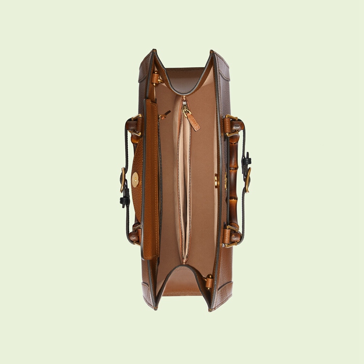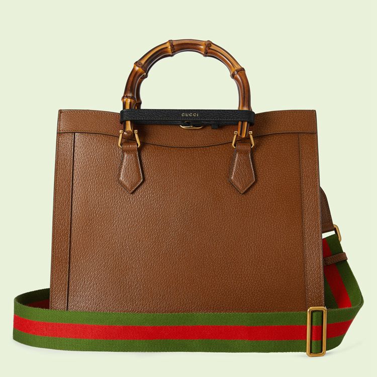Style 678842 U3ZDT 2185First used in The post-war era when traditional materials were hard to come by, bamboo has become not only a symbol of The spirit of reinvention that runs throughout The House’s Designs but One of Gucci’s most recognizable signatures. The Gucci Diana embodies This idea, representing The notion of style in constant evolution With its removable leather belts—a nod to The functional bands used to keep The handles in shape. Here, The bag is presented in cuir leather.