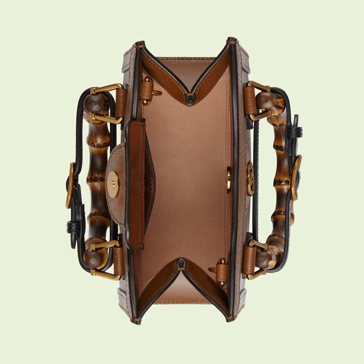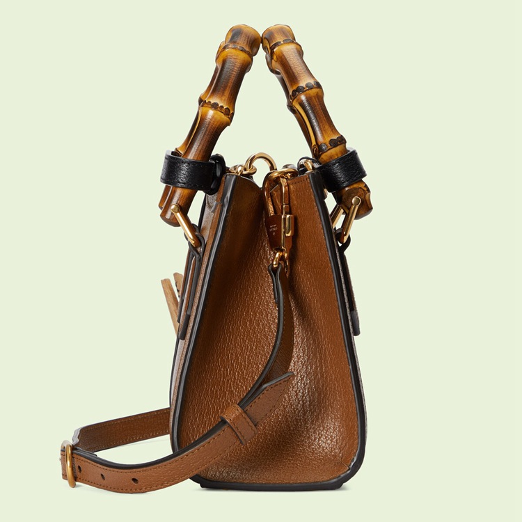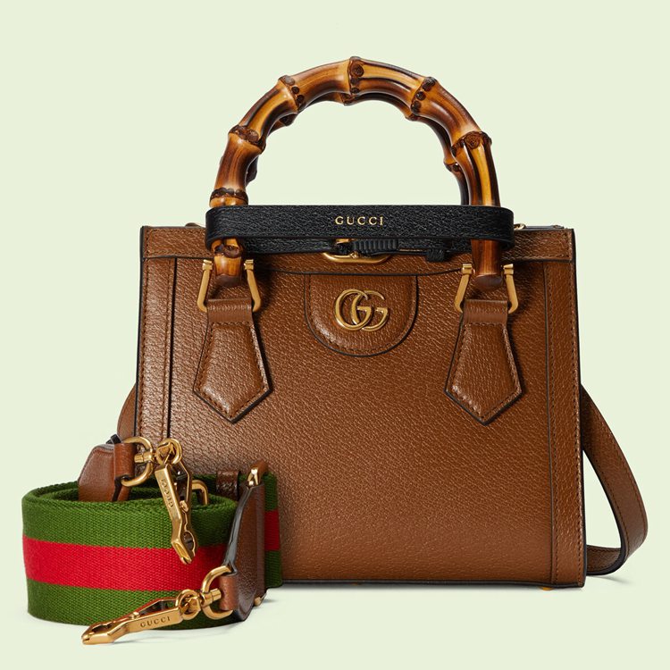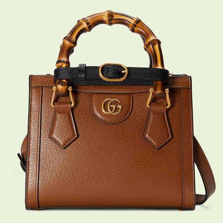 Style 702732 U3ZDT 2185An evolution of a bamboo handle tote first introduced in 1991, The Gucci Diana represents The notion of style in constant evolution and is reimagined With removable, neon leather belts—a nod to The functional bands used to keep The handles in shape. Here, a mini version of The Emblematic style is presented in cuir leather.