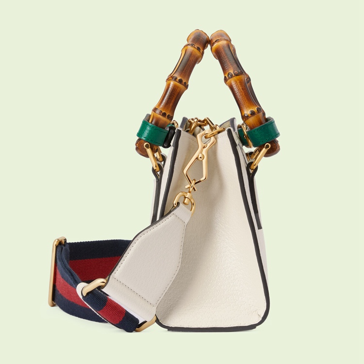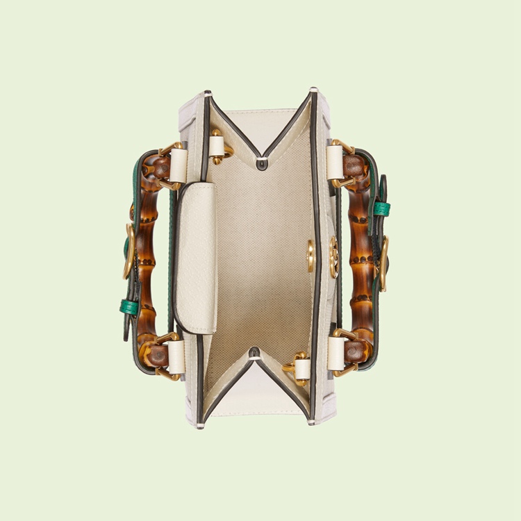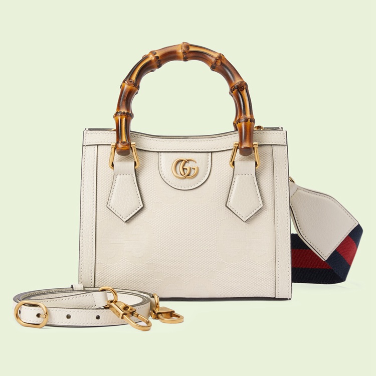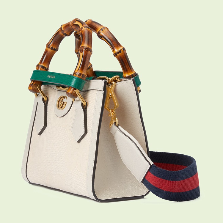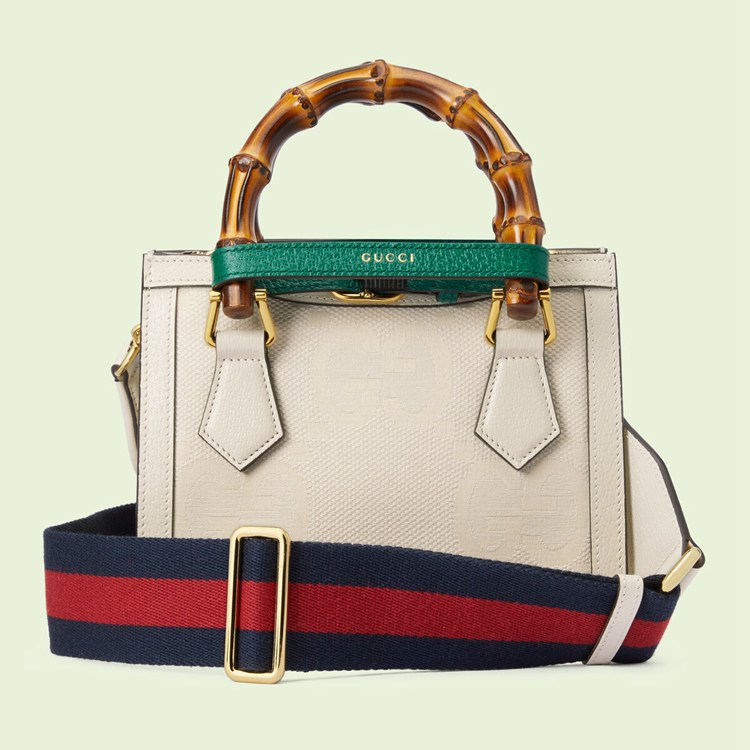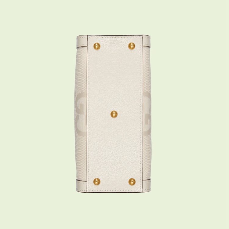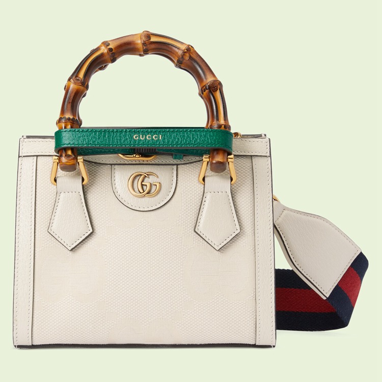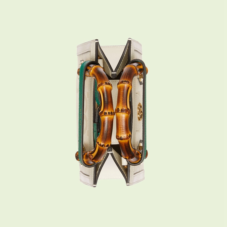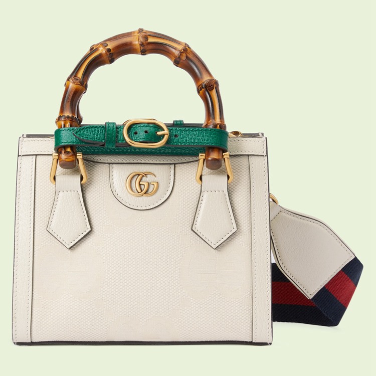 Style 702732 UKMNT 9294Marking The House’s first in-person fashion show since February 2020, Gucci Love Parade unfolded along Los Angeles’ walk of fame. Inspired by The timeless nature of old-Hollywood glamour, The collection presents contemporary takes on traditional pieces. This Gucci Diana mini tote bag is presented in off-white and ivory jumbo GG canvas – a New take on The Classic beige and ebony material With a maxi-sized motif.