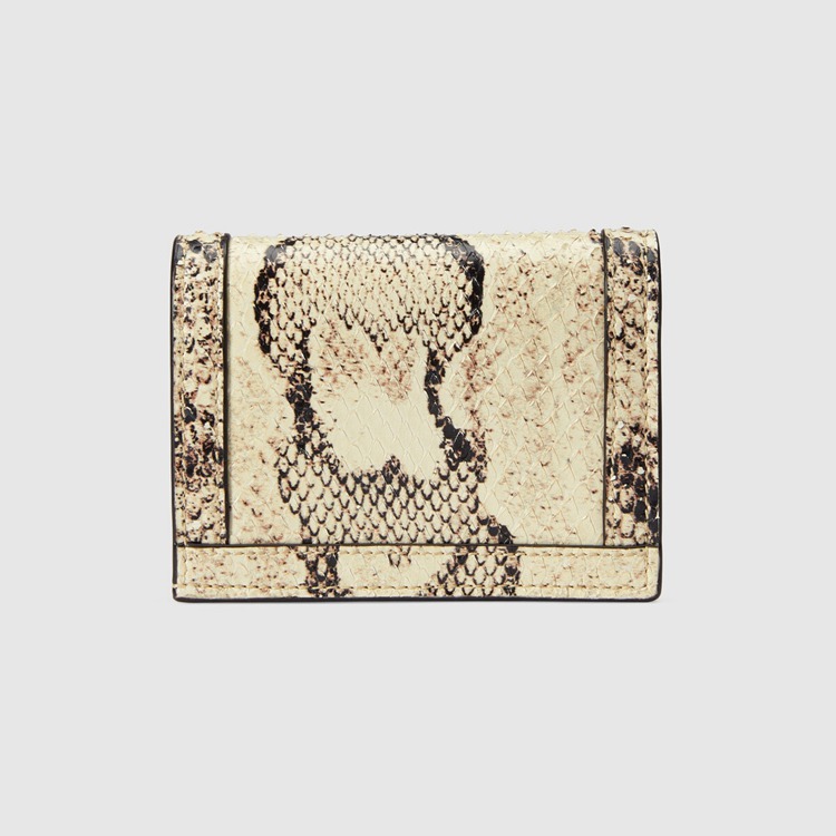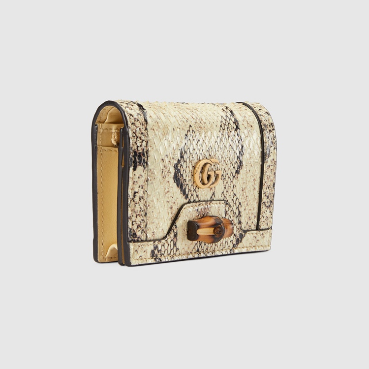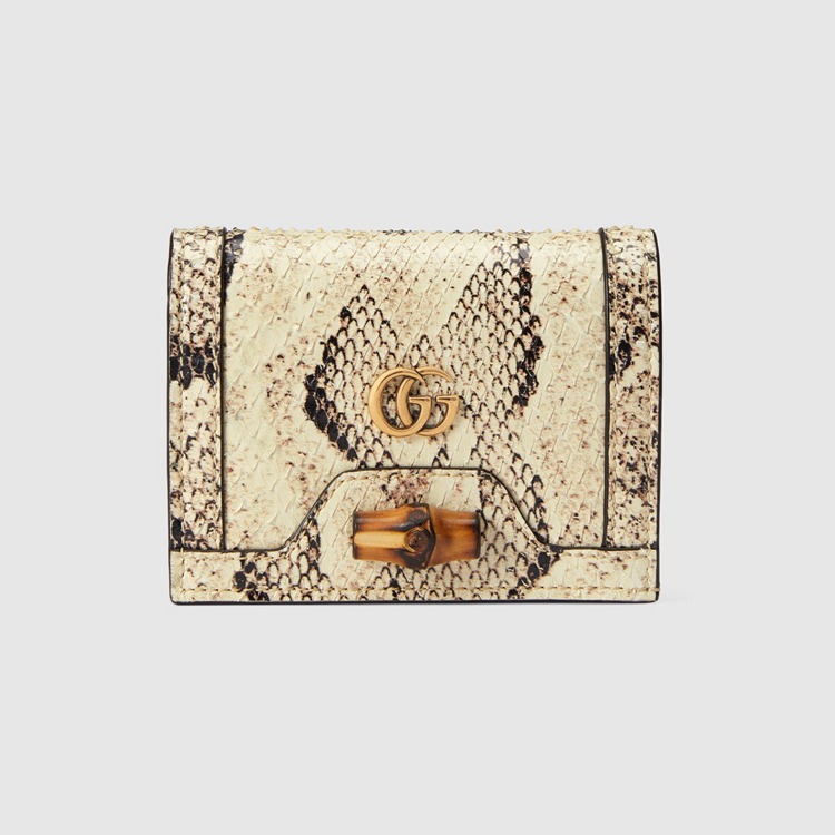 Style 658244 LU3XT 9528Paying homage to a material at The heart of Gucci’s heritage, This card case wallet is defined by its bamboo closure. Crafted from natural colored python, The accessory is completed by Guccio Gucci’s monogram hardware.