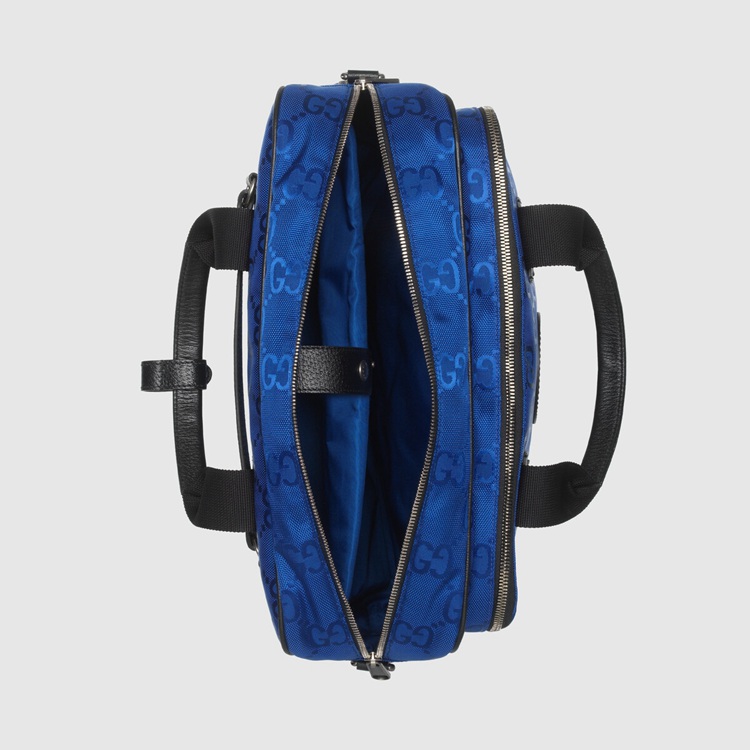 Style 674299 UKDSN 4267 This briefcase is Part of a line of accessories and ready-to-wear made from recycled materials and trims, supporting The House’s commitment to sustainability. Gucci Off The Grid is The first collection from Gucci Circular Lines—a concept created to support The House’s vision For circular production. Designed For those mindful of their environmental impact, Gucci Off The Grid uses recycled, organic, bio-based and sustainably sourced materials.