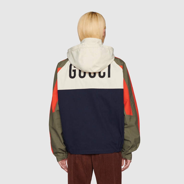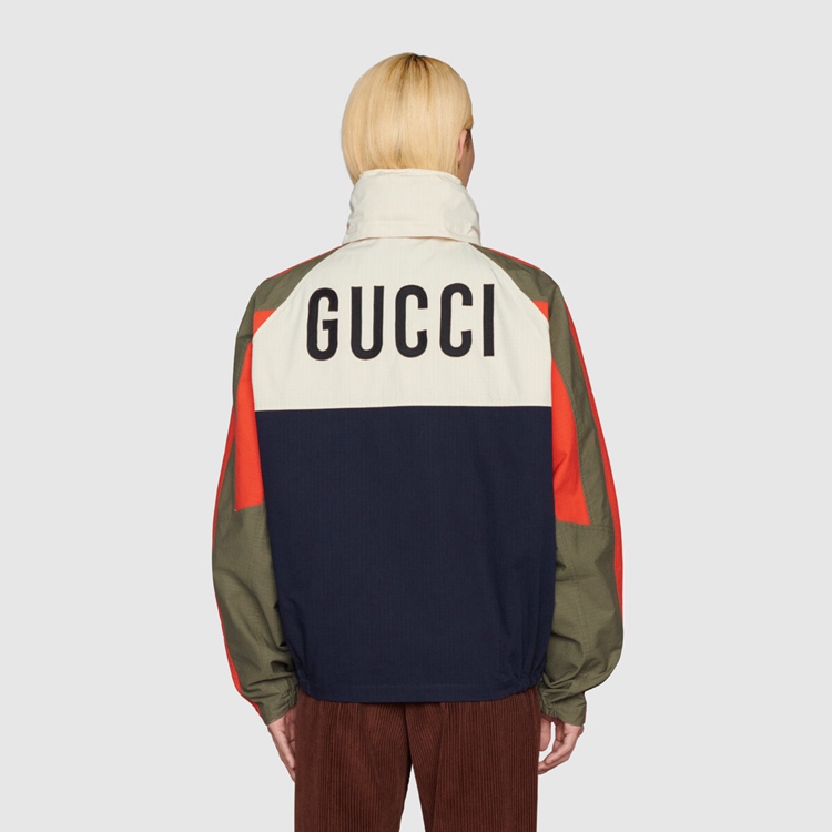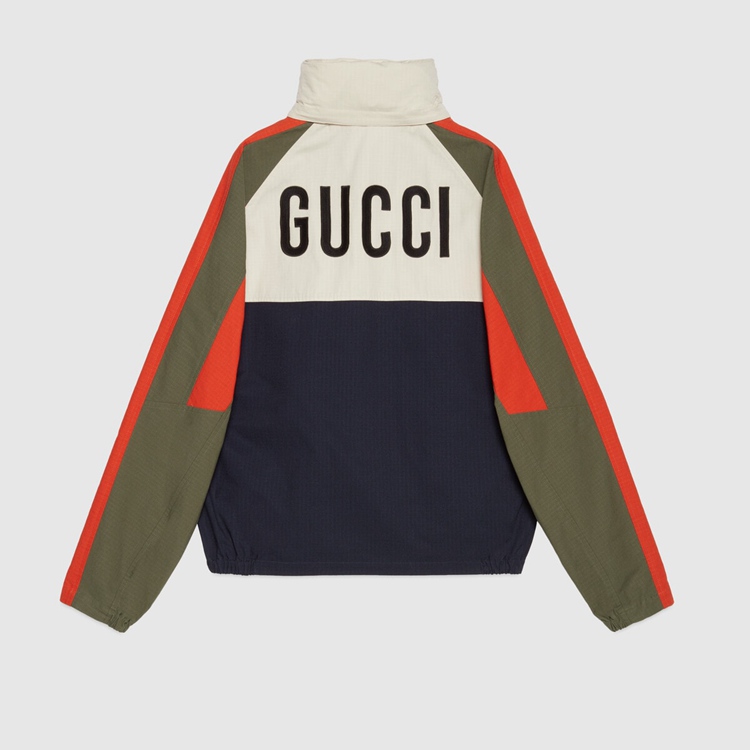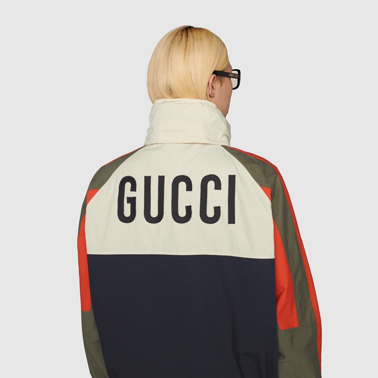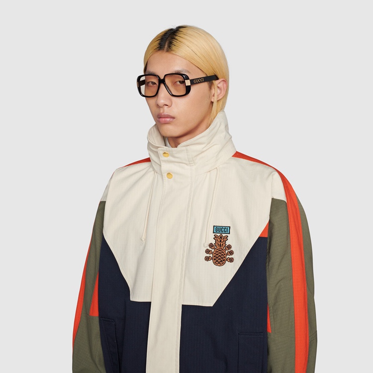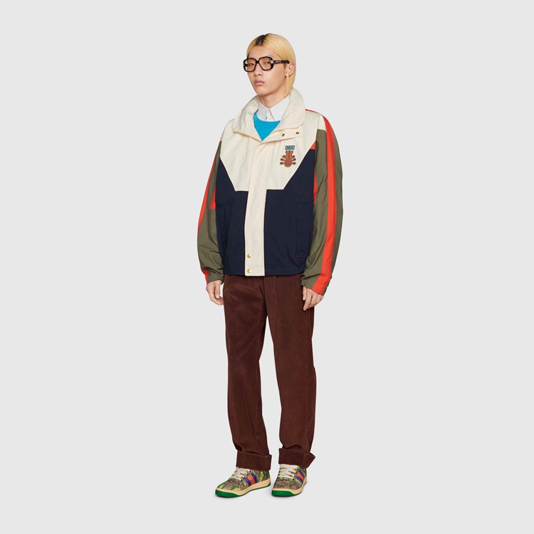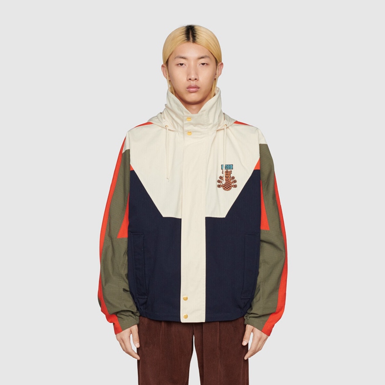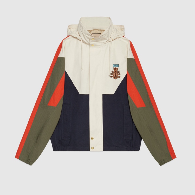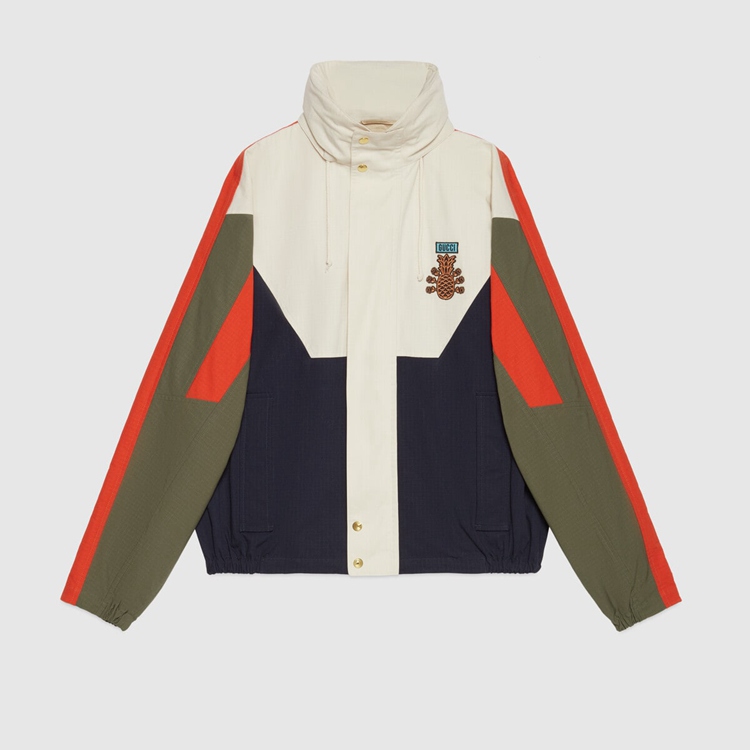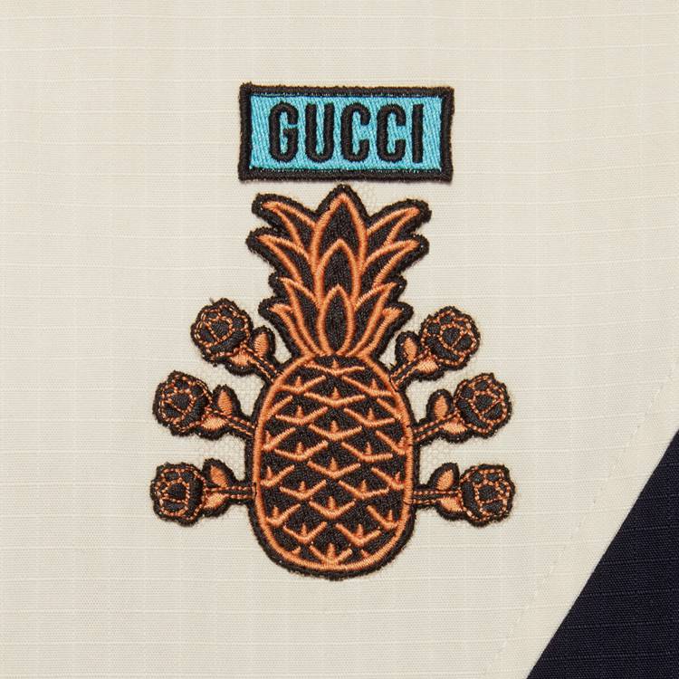 Style 669142 ZAIEU 9670 Gucci celebrates its 100th anniversary With a collection that showcases all The decades of The House. Influencing but also being Inspired from pop culture, Aria unfolds its references through a mémoire of symbols. This nylon jacket a playful embroidery depicting The Gucci Pineapple and roses.