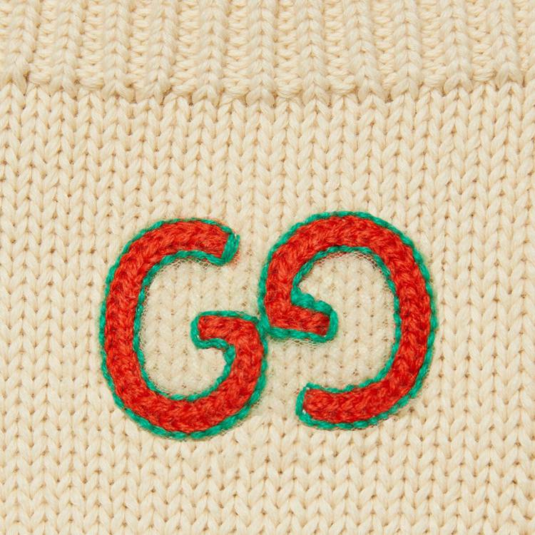 - White cotton knit With Gucci pineappble and roses embroidery and intarsia