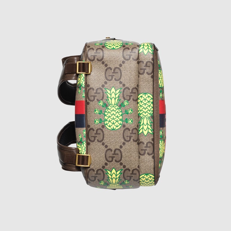 - Maxi GG Supreme canvas With pineapple, Web Inspired stripe and ‘What’s Inside’ print, a material With low environmental impact