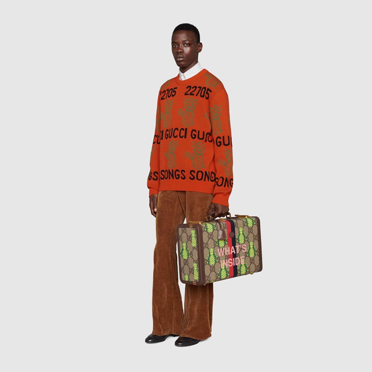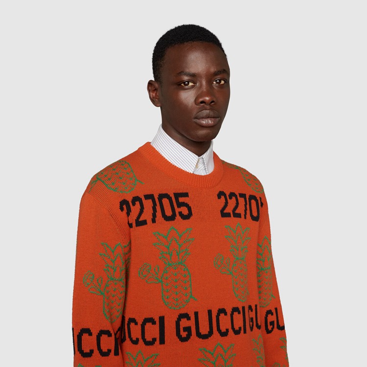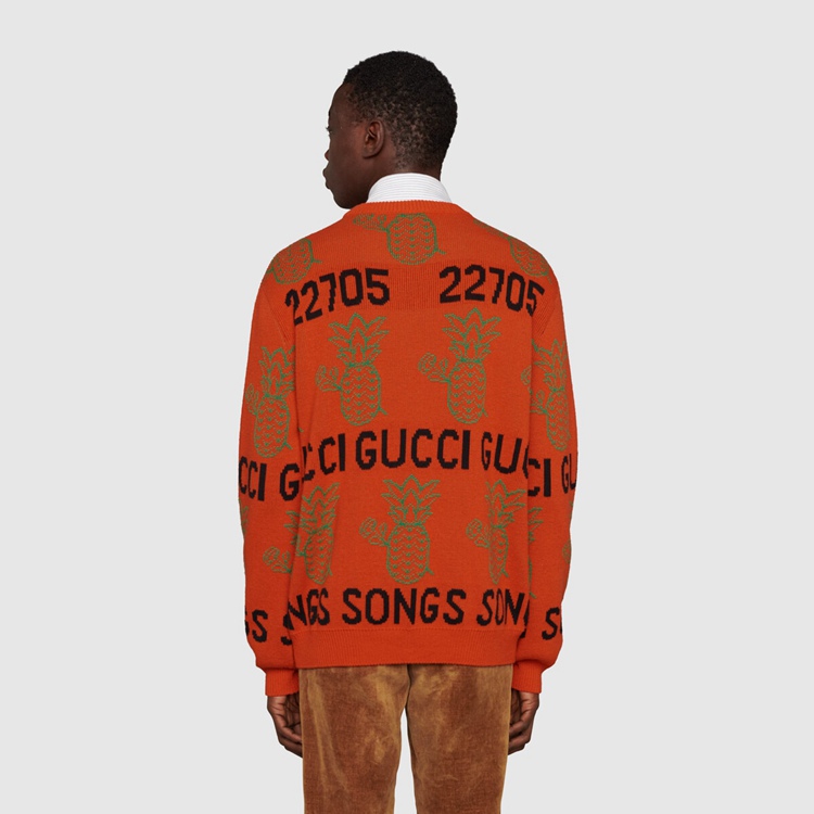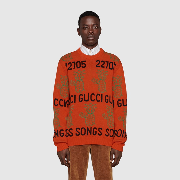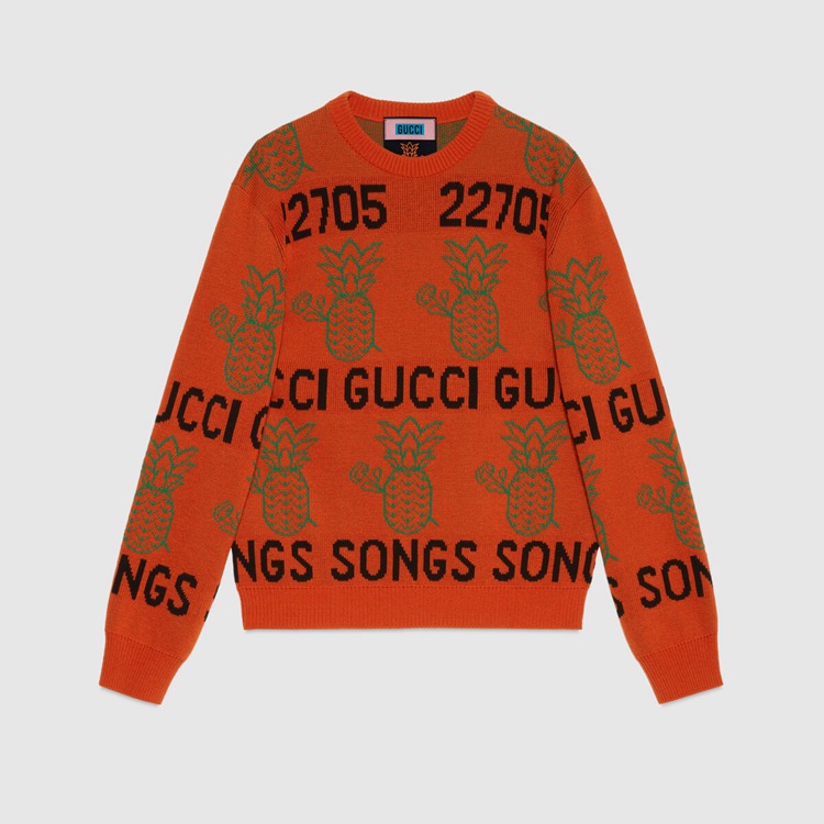 - Orange wool cotton With Gucci Pineapple and roses With ‘22705 Gucci Songs’ jacquard