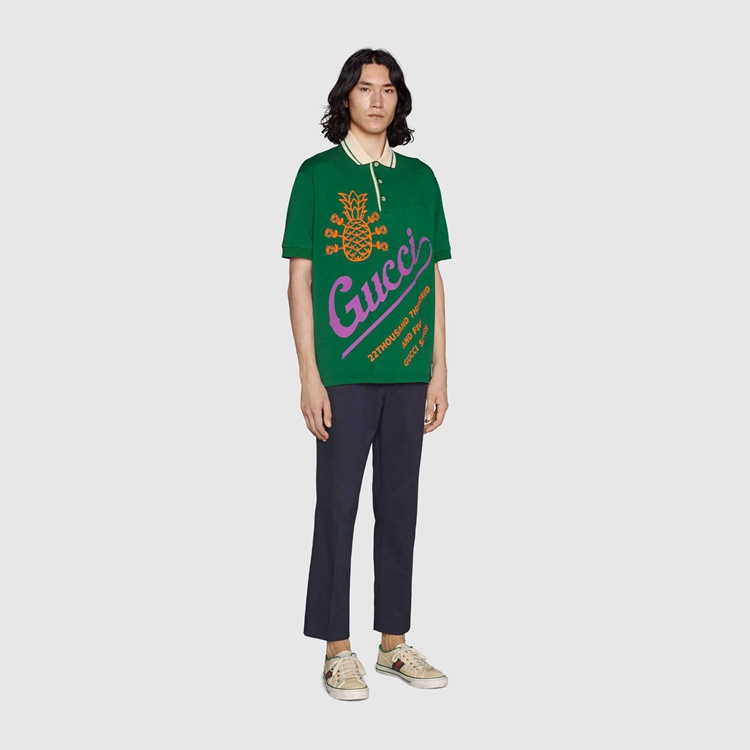 - Green washed cotton jersey With ‘Inevitable’ Gucci ’22Thousand 7Hundred and Five Gucci Songs’ With pineapple and roses print—powered by Musixmatch