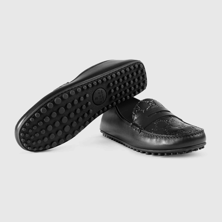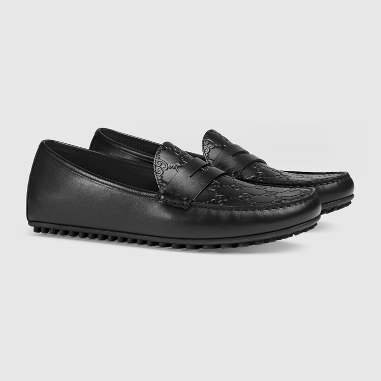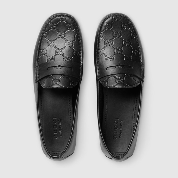 Style 431063 CWD20 1000 A driving shoe made in heat debossed Gucci Signature leather resulting in a defined print With a firm texture.