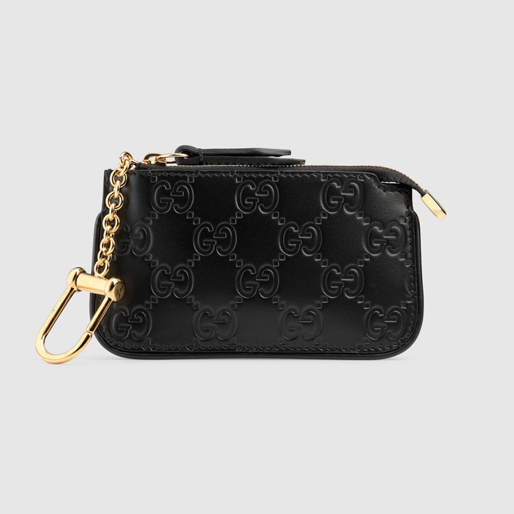 Style 447964 CWC1G 1000 A key case made in heat debossed Gucci Signature leather With a defined print and firm texture.