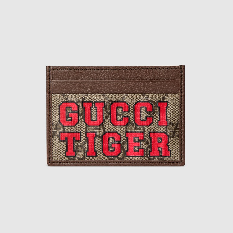 Style 673002 US7EC 9396 This GG card case is characterized by The printed motto ‘ Gucci Tiger.’ References to The feline are often seen throughout The Creative Director’s collections as an expression of The House’s fascination With The wild beauty of The natural world.
