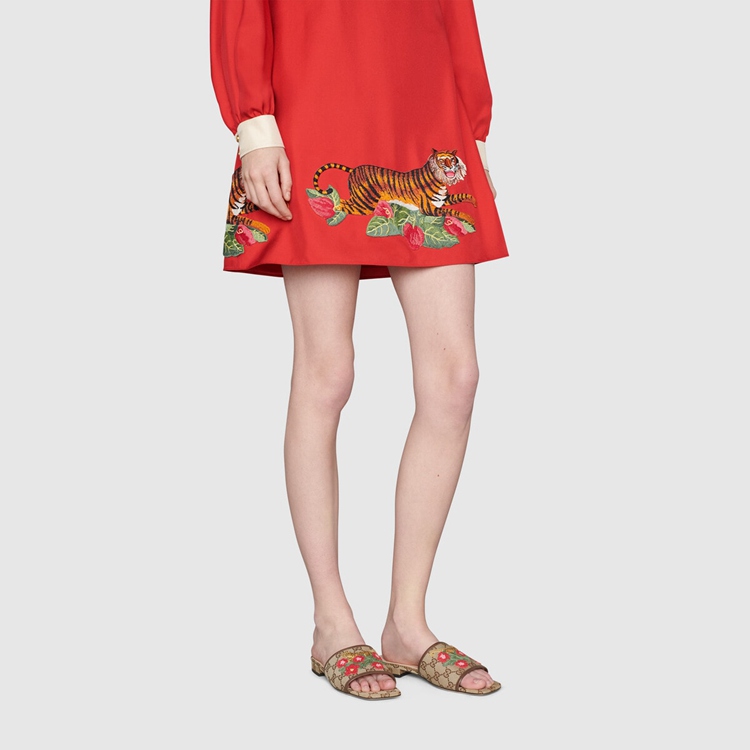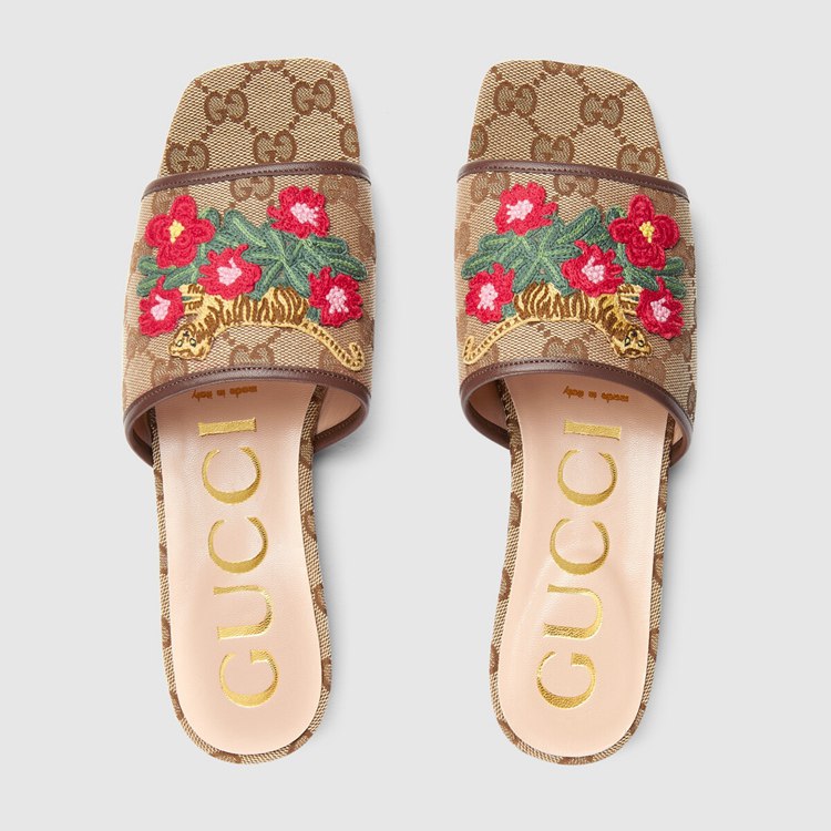 Style 687582 KY980 9763 Gucci presents a reinterpretation of a late 1960s archival design by Vittorio Accornero— The artist and illustrator who created The House’s signature Flora print. The tiger, a motif often seen in Alessandro Michele’s collections, is an expression of The House’s fascination With The wild beauty of The natural world. Here, The feline defines This pair of slide sandals.