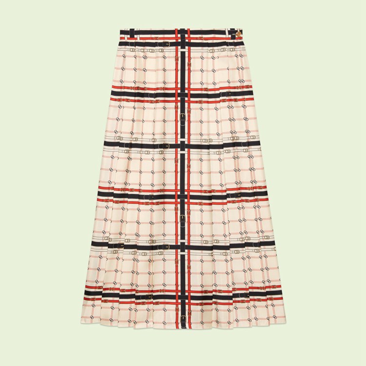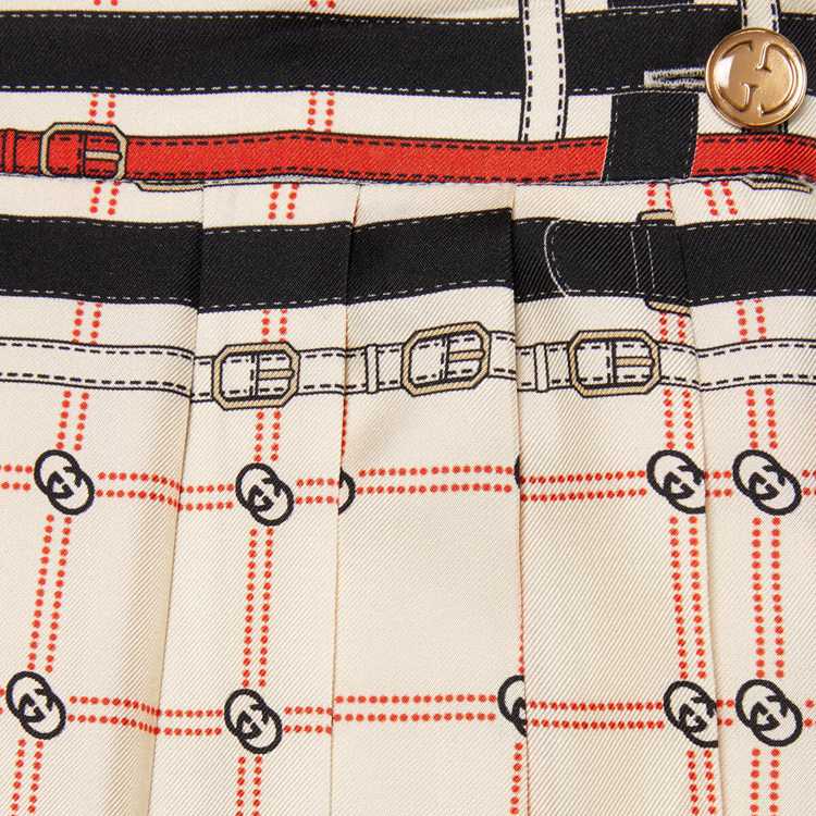 Style 686960 ZAISU 9069 For Gucci Love Parade, Classic styles are refashioned in contemporary silhouettes and mixed With eclectic references. Inspired by vintage silk scarves, The Interlocking G chain check print gives This skirt a Retro touch.