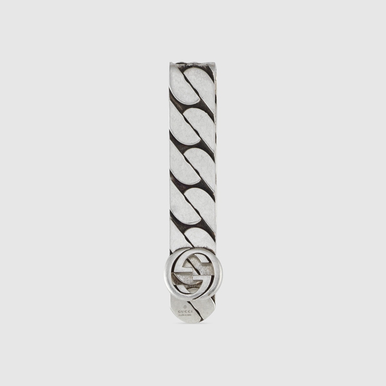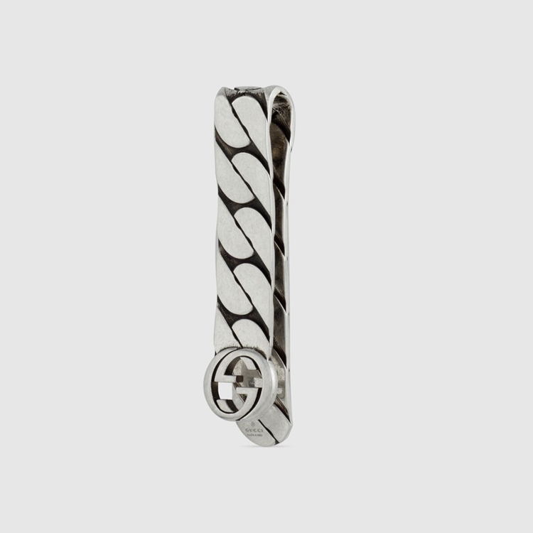 Style 678646 J8400 0728Precious materials add a refined touch to The everyday. Crafted from sterling silver, This money clip’s chain- Inspired design plays With The unexpected. The Interlocking G completes The style With a vintage feel.