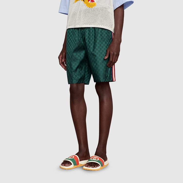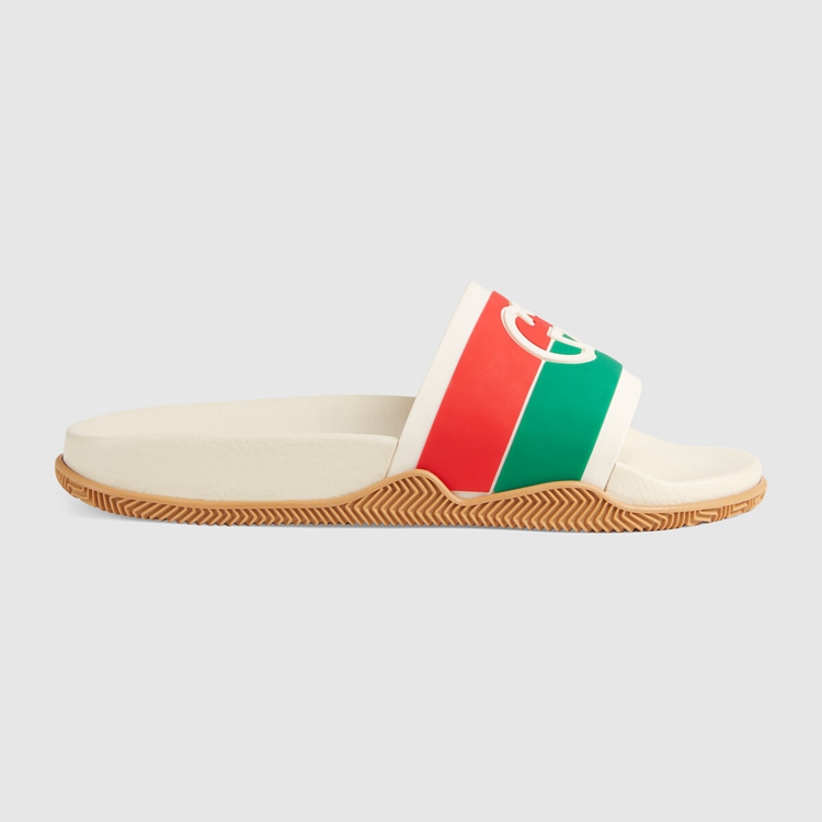 Style 655265 JFA00 9136House codes define This rubber slide sandal. Paying tribute to two symbols of from The archives, The Interlocking G, a reference to Guccio Gucci’s monogram, mixes With orange and green stripes—a reference to The House Web.