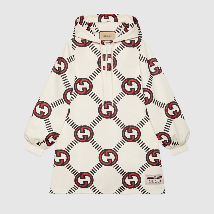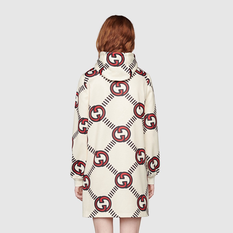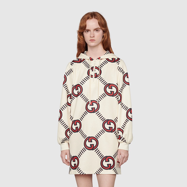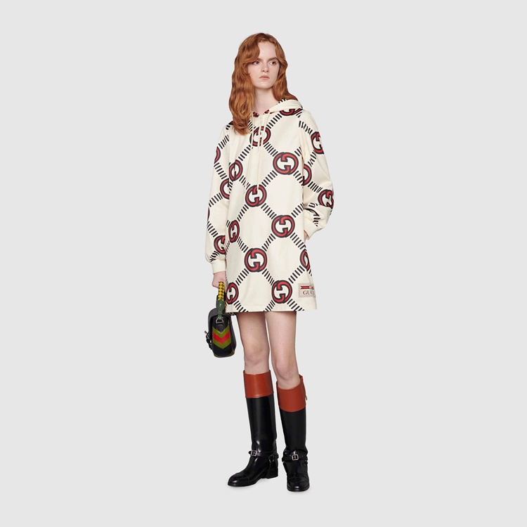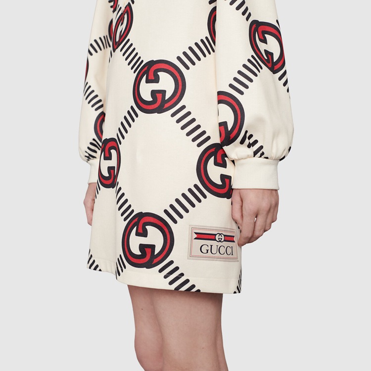 Style 681269 XJD1H 9118 A New take on The logo, The Interlocking G print defines This zip dress. Retro sportswear influences mix With Classic Gucci symbols, resulting in a series of eclectic and unexpected ready-to-wear styles.