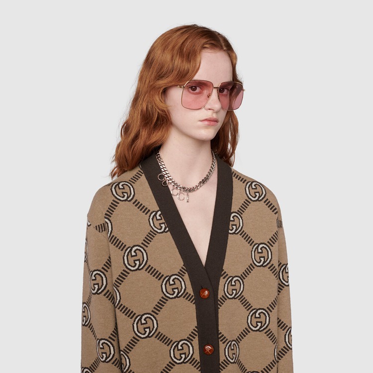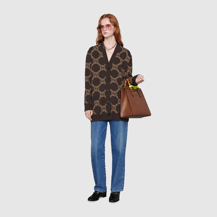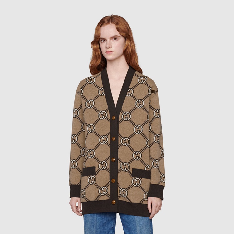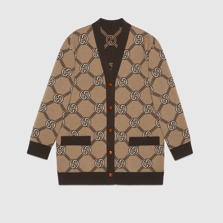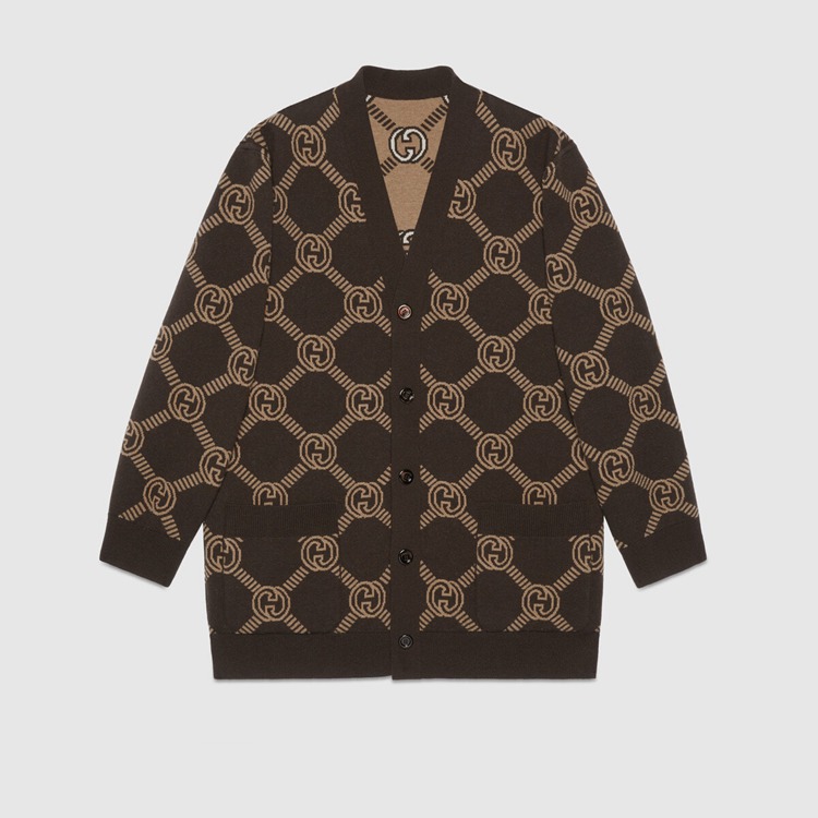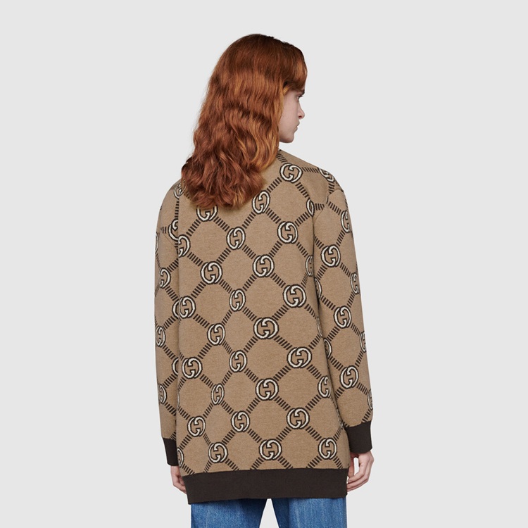 Style 678308 XKB7T 2345 A New take on The logo, The Interlocking G jacquard defines This wool cardigan. Retro influences mix With Classic Gucci symbols, resulting in a series of eclectic and unexpected ready-to-wear styles.