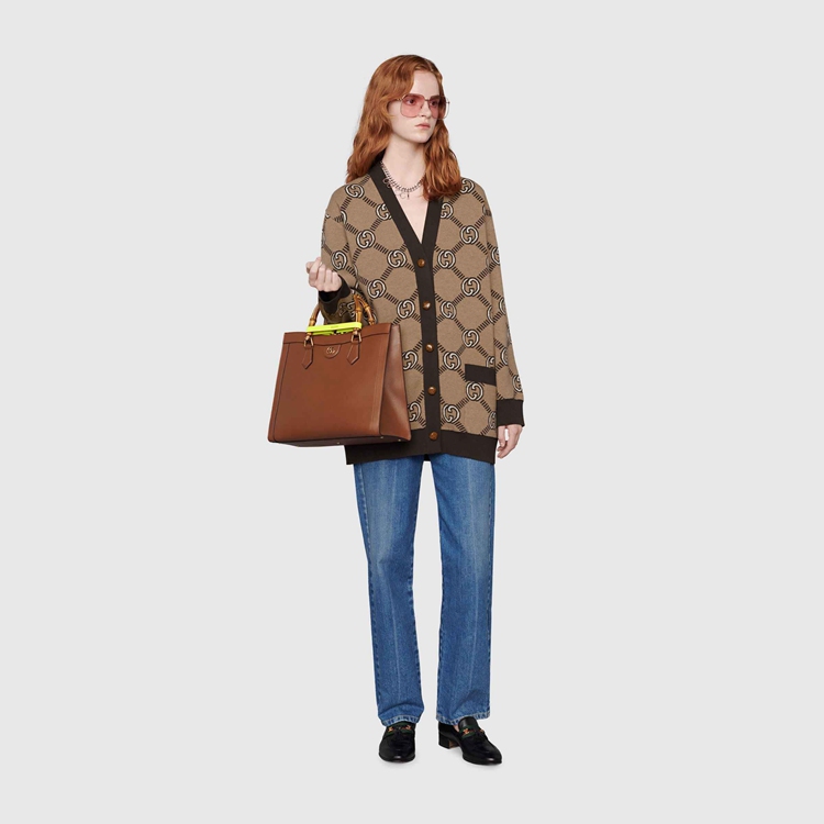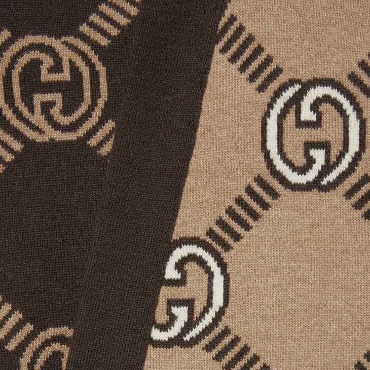 - Light brown and ivory maxi Interlocking G wool jacquard
