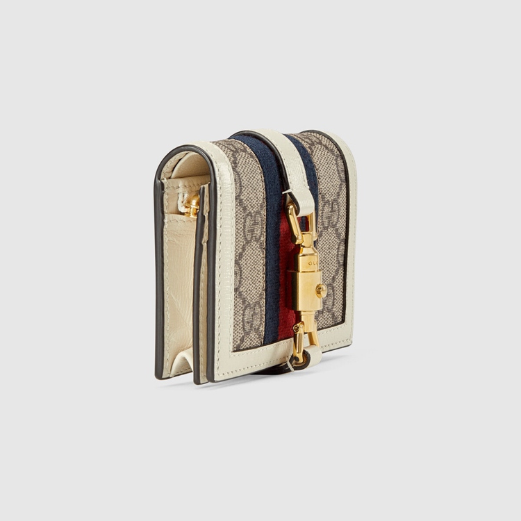 Style 645536 HUHHG 9794 Inspired by The world of handbags, The Jackie 1961 line evolves With The introduction of a petite card case wallet. A gold-toned piston details pays homage to The first Jackie bag, Crafted in 1961. Here, The accessory is presented in The House’s monogram canvas.