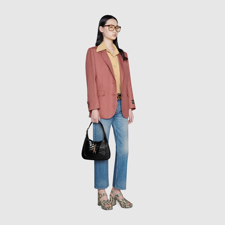 Style 636709 EV40G 1000Brought back to The forefront, The Jackie 1961’s recognizable shape is enhanced With an additional, detachable shoulder strap. Attached to The bag With a buckle closure, The second strap adds a contemporary feel to The archival style, providing New ways to wear—from top handle, to shoulder and cross body. The style is introduced in precious black crocodile For The Ouverture collection.