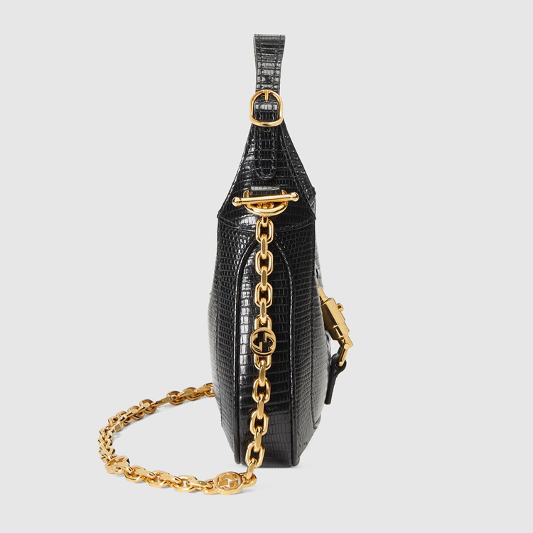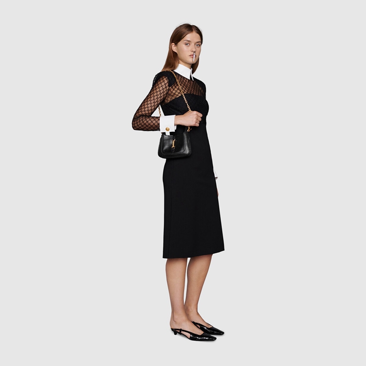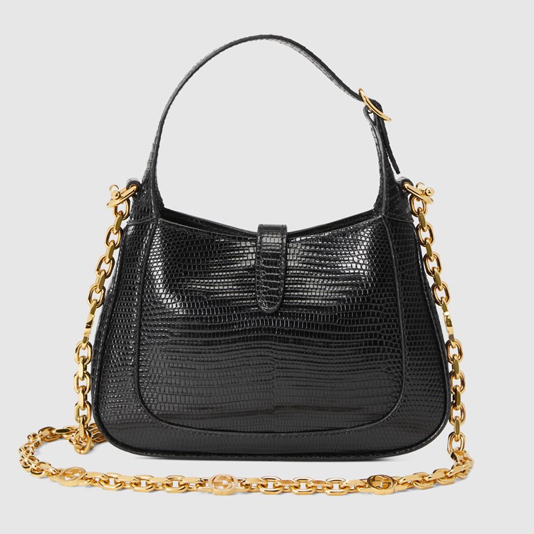 Style 675799 LUZ0G 1000 A precious take on The Emblematic design, The Jackie 1961 is introduced in glossy black lizard. Speaking to The historical symbols that define The style, The mini bag is completed by The line’s recognizable gold-toned piston closure and a delicate chain strap With a miniature Interlocking G motif.