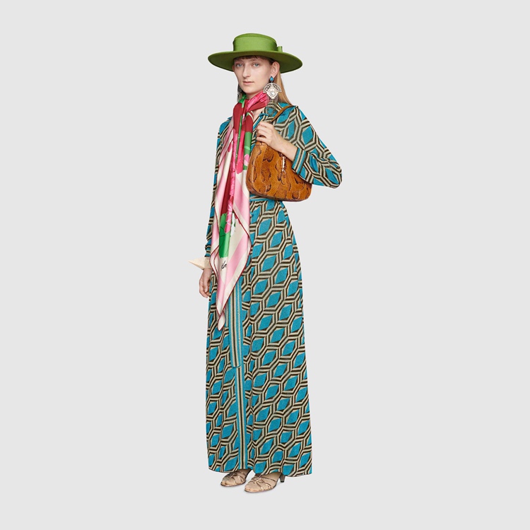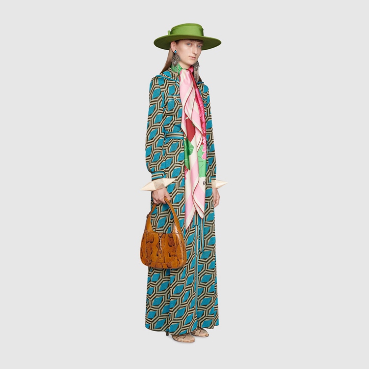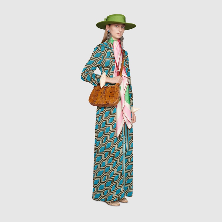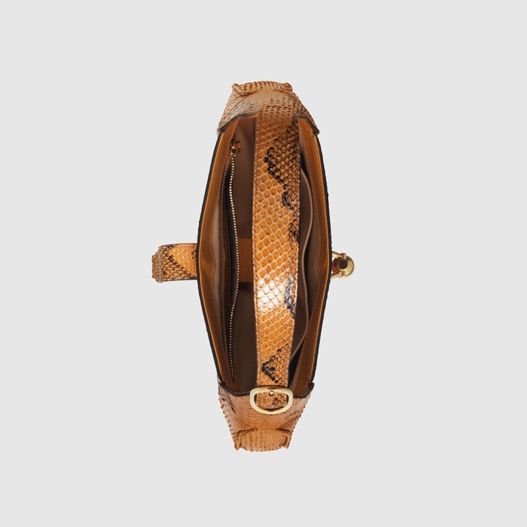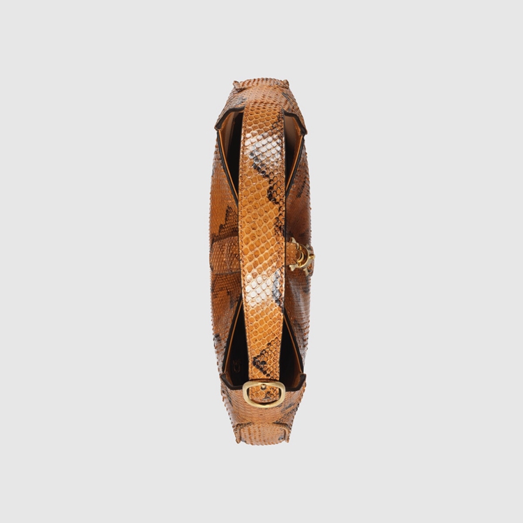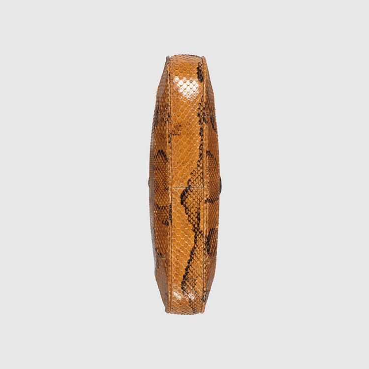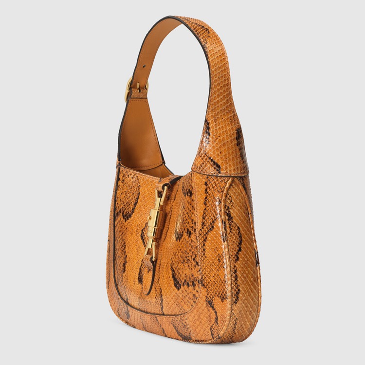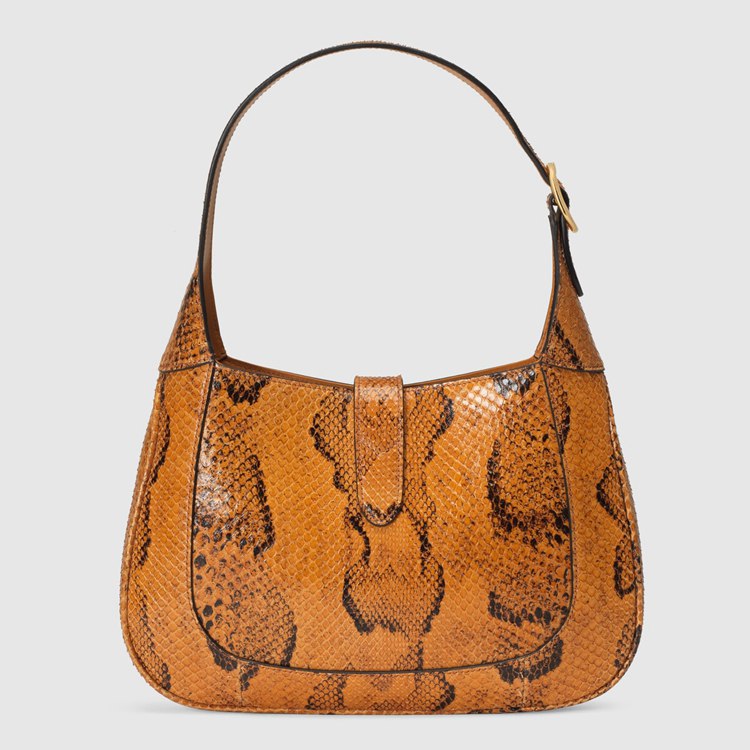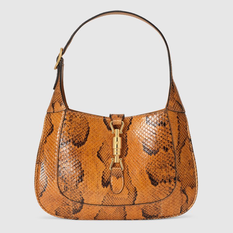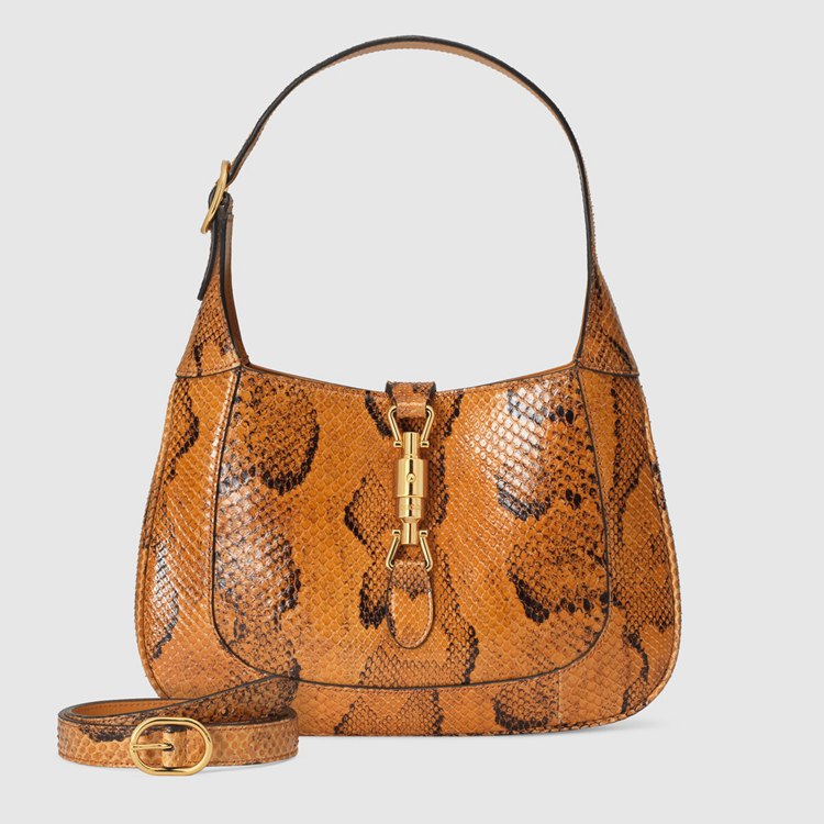 Style 636709 LU30G 7744Brought back to The forefront, The recognizable shape is enhanced With an additional, detachable shoulder strap. Attached to The bag With a buckle closure, The second strap adds a contemporary feel to The archival style, providing New ways to wear—from top handle, shoulder to cross body. The style is introduced in brightly colored python. The Jackie 1961: available exclusively in Gucci stores and on Gucci.com