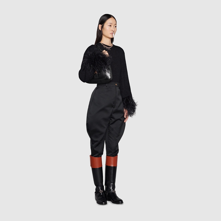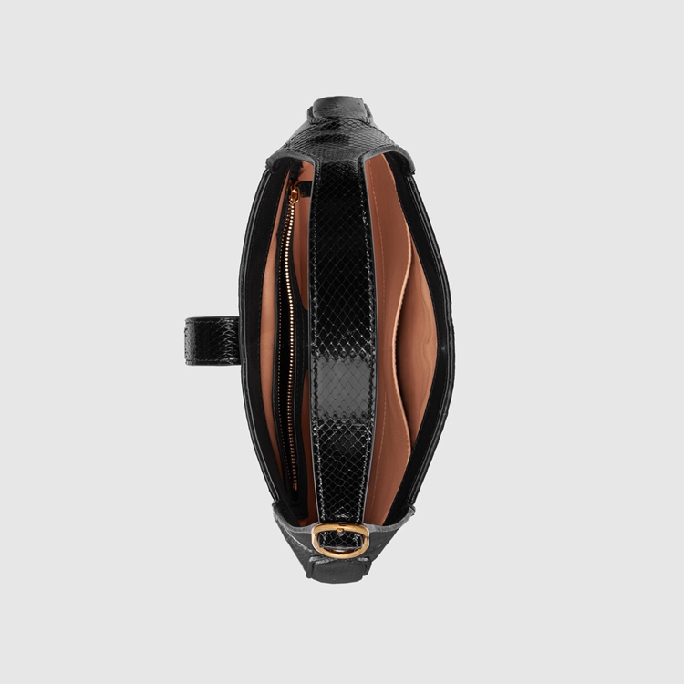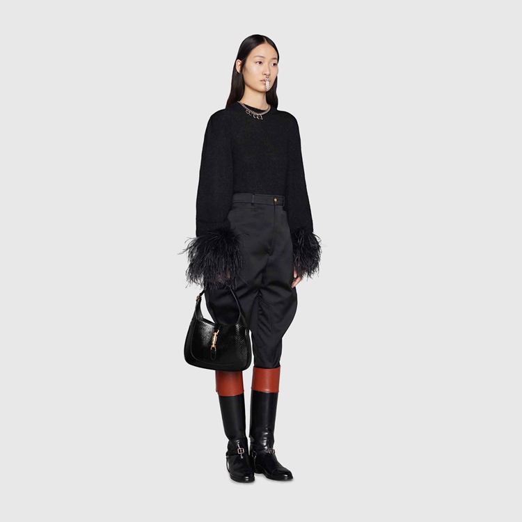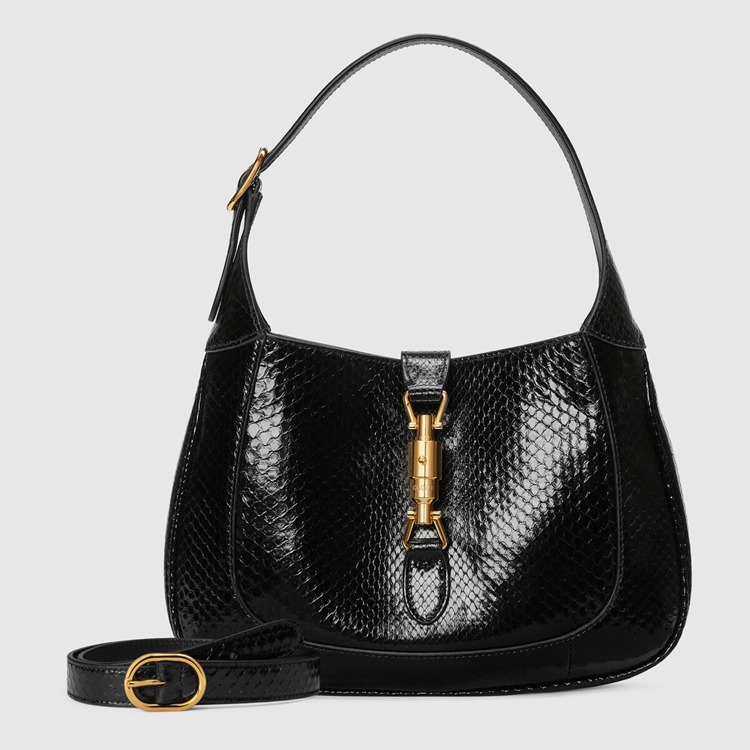 Style 636709 LJM0G 1000Precious materials appear in unexpected ways as a reference to The romantic narrative that runs through Gucci’s designs. A play on an archival piece, The Jackie 1961’s Emblematic half-moon shape is presented in black python. Continuing to reference The historical item that Inspired This iteration of The bag, The line’s signature piston hardware completes The style.