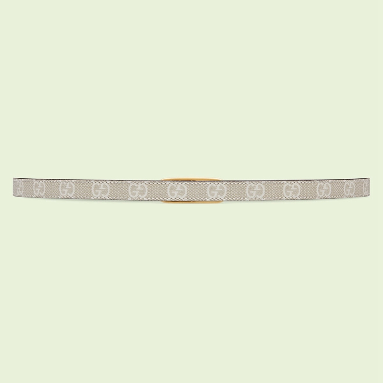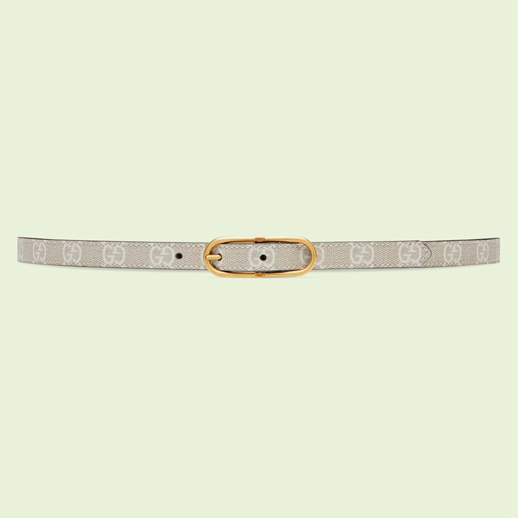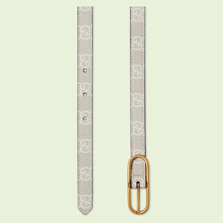Style 649492 UUL0C 9679 A heritage material from The archive, GG Supreme has been reimagined in Gucci Love Parade in different Color combinations and combined With contemporary as well as Classic styles. This thin belt is presented in a beige and white variation of The signature material With a tonal trim. Originally a play on a ’30s design, The canvas speaks to The historical narrative that runs throughout The collection.