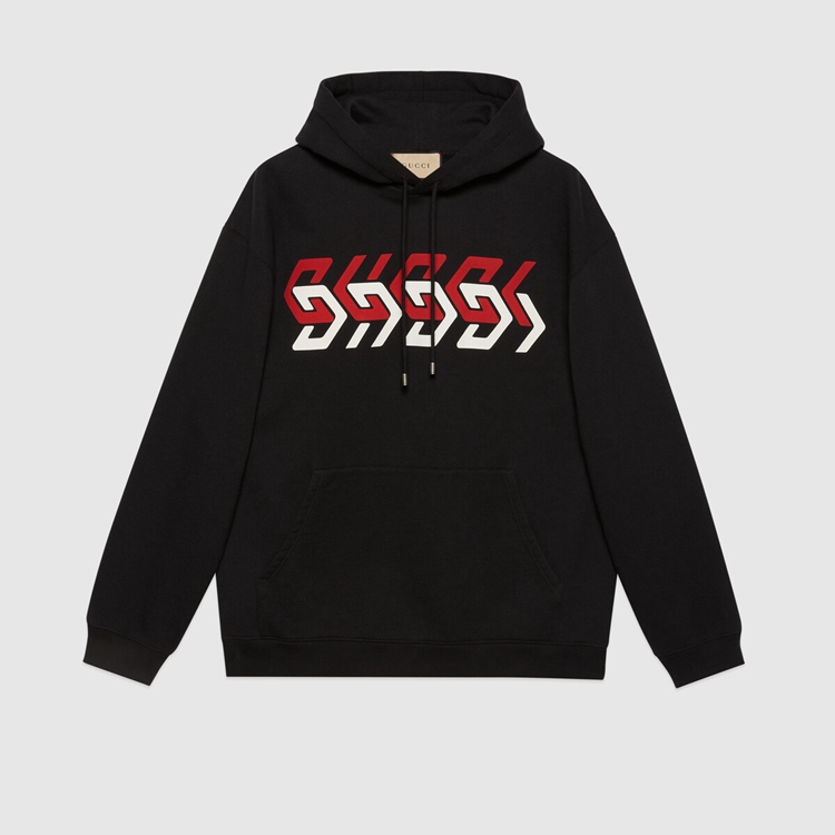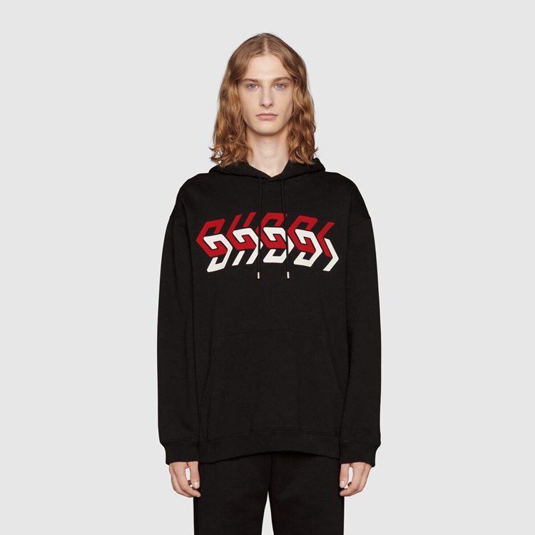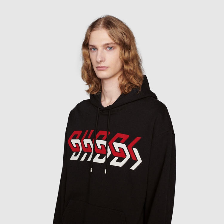 - Black light felted cotton jersey With Gucci mirror print and distressed effect
