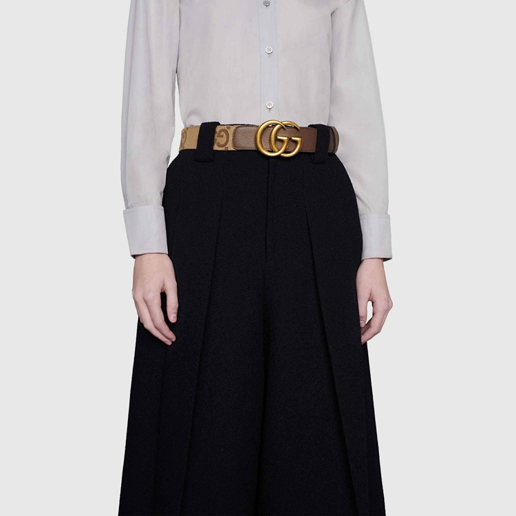 Style 400593 UQLAC 2572Reminiscent of The Beloved handbag GG Marmont, This wide belt is characterized by The Double G. Inspired by a buckle from The ’70s archives, The gold-toned hardware is imagined each season in New ways, playing With The concept of timelessness. The jumbo GG, a new, maximalist version of The historic monogram, animates a selection of ready-to-wear and accessories For The Aria collection.