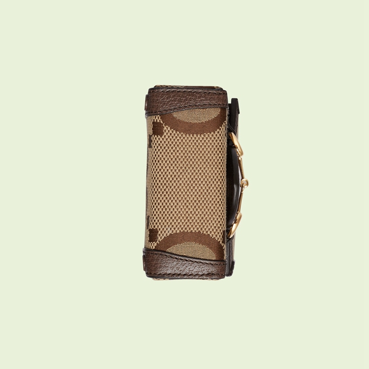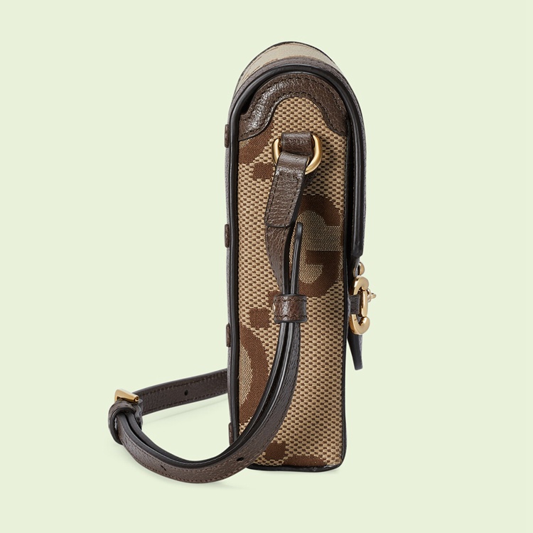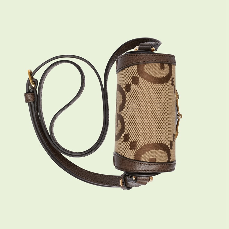 Style 625615 UKMBG 2572Reminiscent of The ’90s trend, Gucci Love Parade sees recognizable elements of The House playfully presented in miniature. With a softly structured half-moon shape, This mini bag is made from jumbo GG canvas and completed by Horsebit hardware.