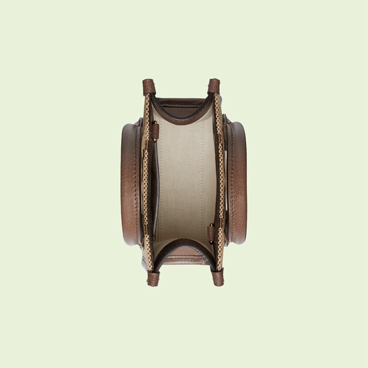 Style 699406 UKMDG 2570First seen as Part of Gucci Aria, The jumbo version of The Emblematic GG motif returns atop signature luggage pieces, imbuing each design With a pronounced logo feel. This mini tote bag is accentuated by The signature green and red House Web, a contemporary take on a Gucci archival belt buckle from The ’70s.