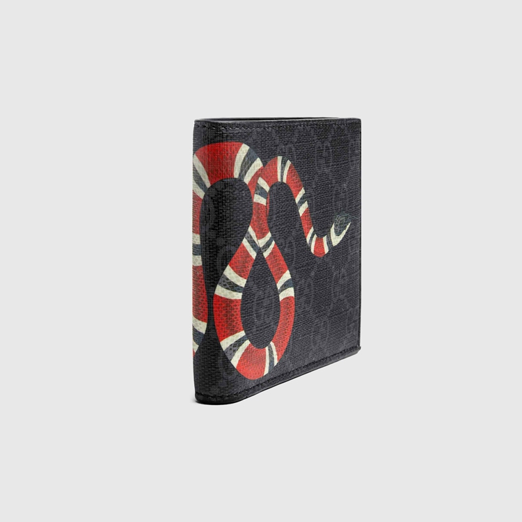 Style 451268 K551N 1058 The Kingsnake, in vibrant colours, continues to emerge as One of The signature details of The House’s eclectic narrative. Here, it is printed across a wallet made in GG Supreme canvas, a material With low environmental impact.
