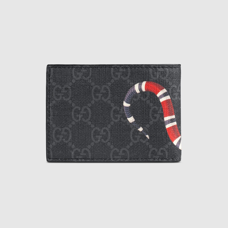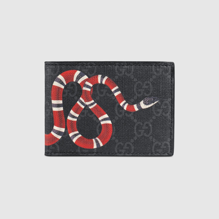 Style 451272 K561N 1058 The Kingsnake, in vibrant colors, continues to emerge as One of The signature details of The House’s eclectic narrative. Here, it is printed across a wallet made in GG Supreme canvas, a material With low environmental impact.