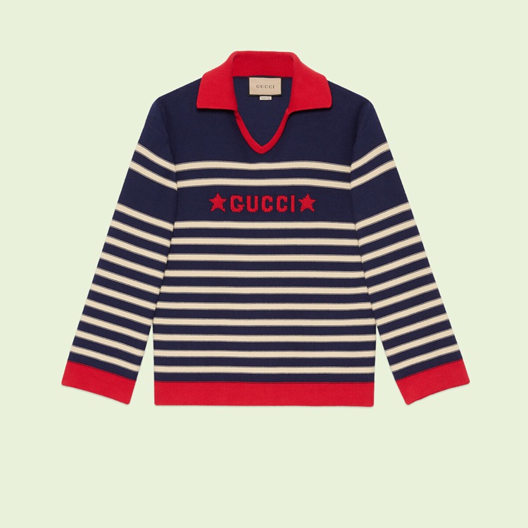 Style 692148 XKCA3 4583 The blue, red and white stripes speak to The nautical feel that permeates Gucci’s collections. Notes of travel and faraway places have always been integrated into The Gucci identity, beginning With Gucci Guccio working at The Savoy Hotel in London—an experience that Inspired him to start The luxury goods brand.