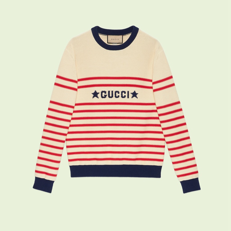 Style 692149 XKCA3 9171 The white, red and blue stripes speak to The nautical feel that permeates Gucci’s collections. Notes of travel and faraway places have always been integrated into The Gucci identity, beginning With Gucci Guccio working at The Savoy Hotel in London—an experience that Inspired him to start The luxury goods brand.