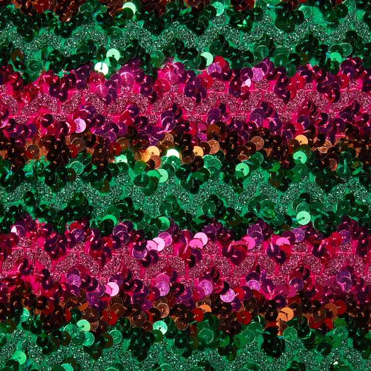 - Green and pink lamé and sequin embroidery