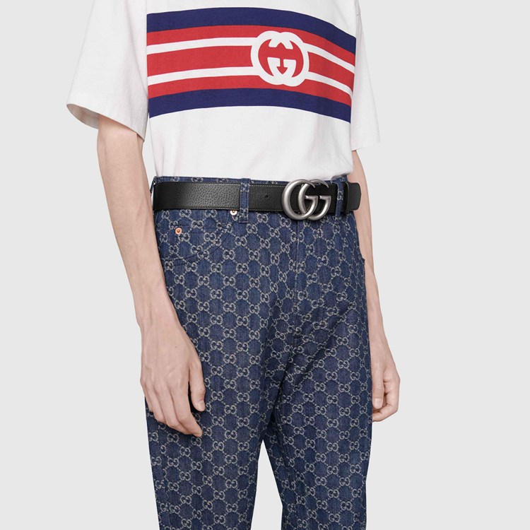 Style 406831 DJ20N 1000Calfskin leather belt heat-stamped to achieve a boar effect, giving it a textured appearance. Finished With our signature Double G buckle.