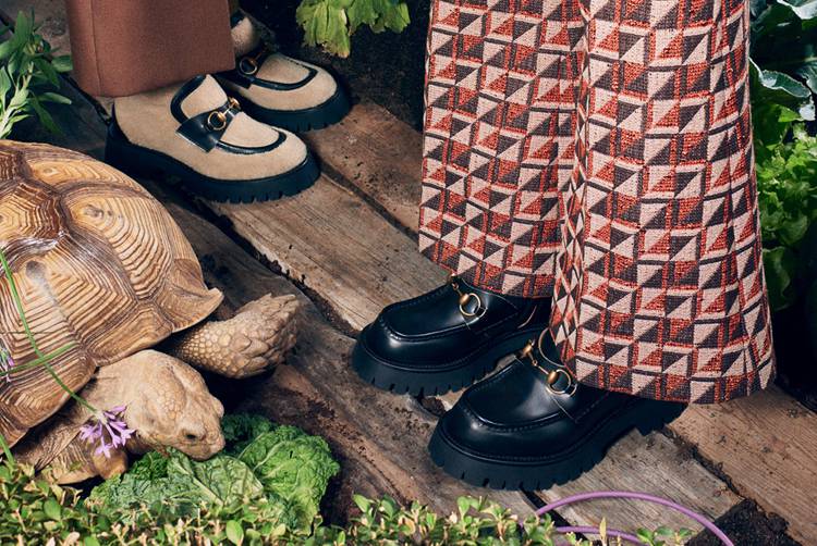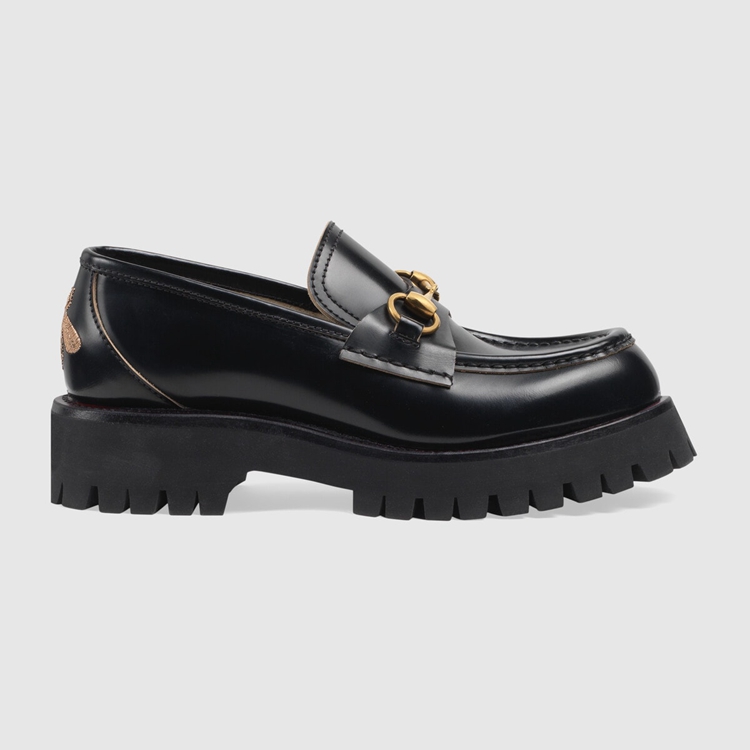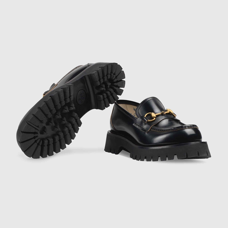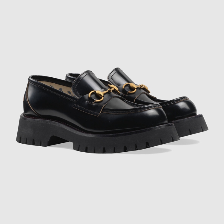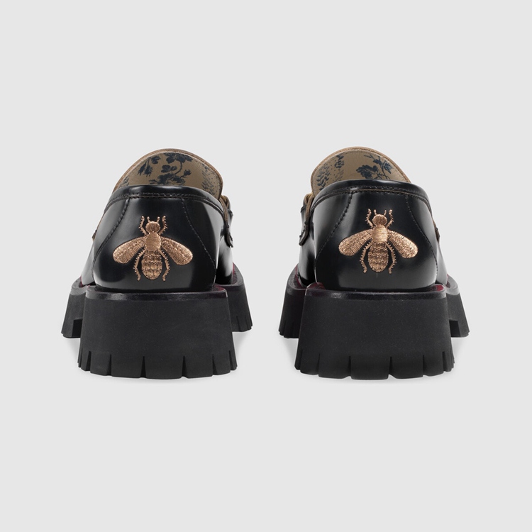 Style 577236 DS800 1000 A lug sole Horsebit loafer With blue rosebud print lining on The insole. A mainstay in Gucci history since The ’50s, The Classic Horsebit loafer bridges The past to The present. A homage to The House’s heritage rooted in The equestrian world, The Emblematic shape is reworked in a contemporary shape on a rubber lug sole.
