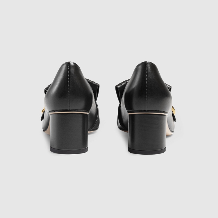 Style 408208 C9D00 1000 The Marmont leather mid-heel pump With Double G hardware detail on fold over fringe.