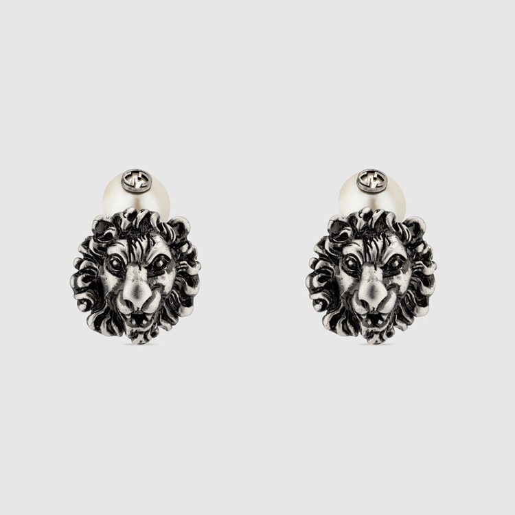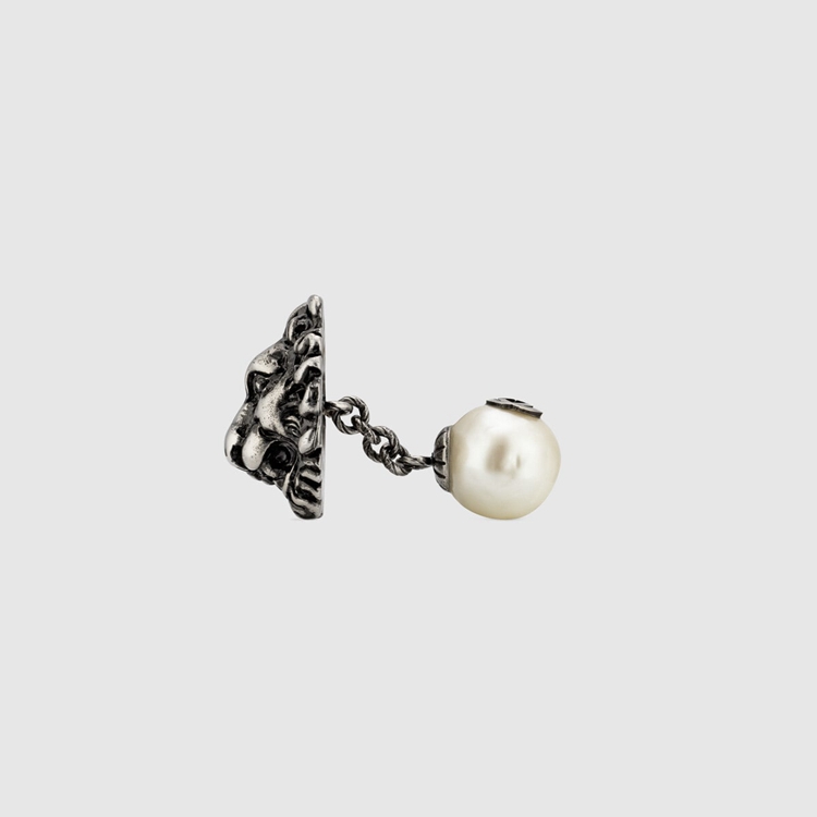 Style 640854 J1D90 8171Brought back into The forefront With a palladium finish, The lion makes a reappearance in The Epilogue collection With a white glass pearl defined by an Interlocking G detail.