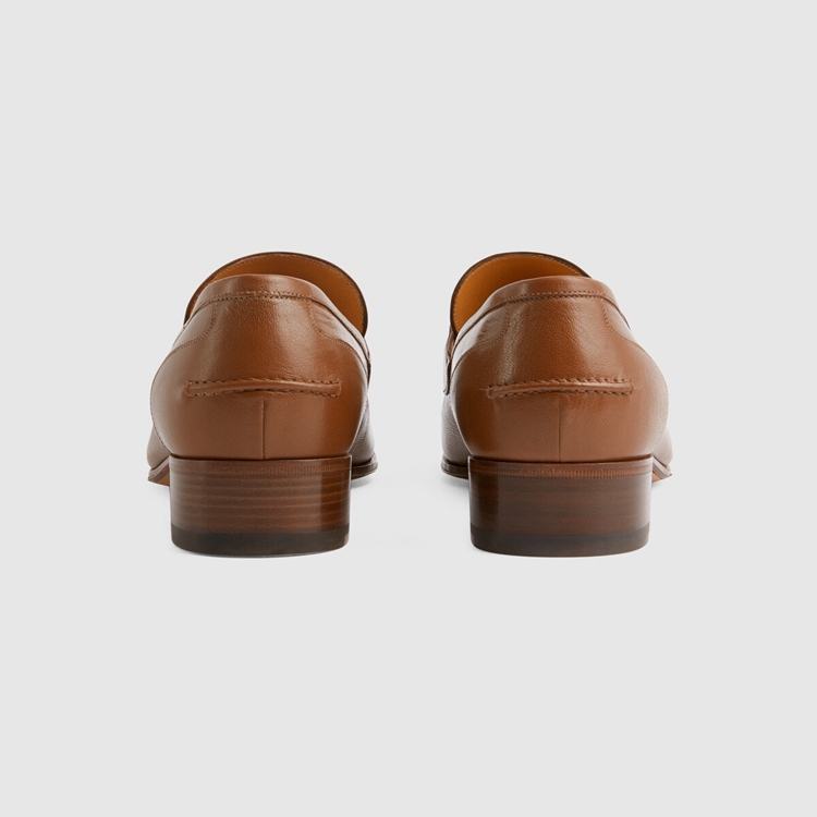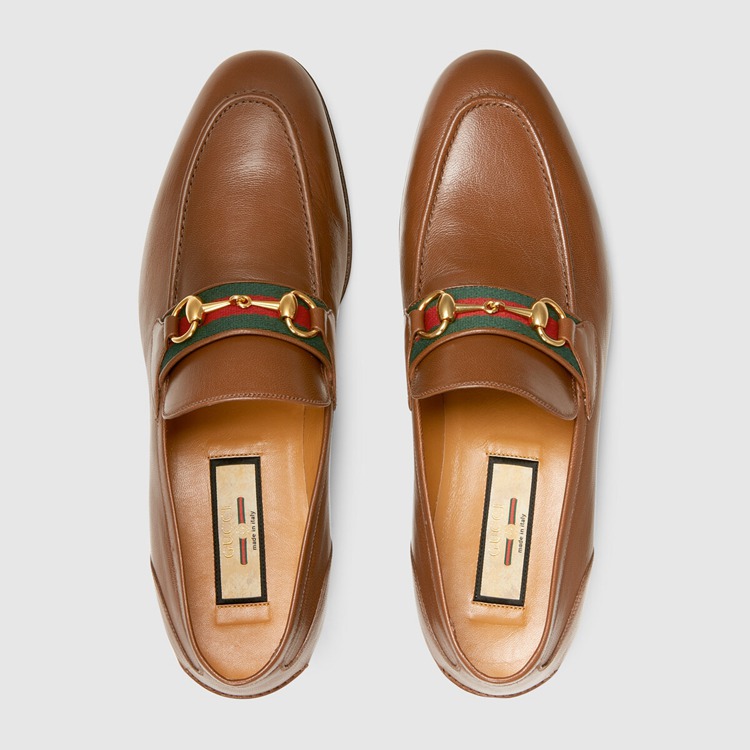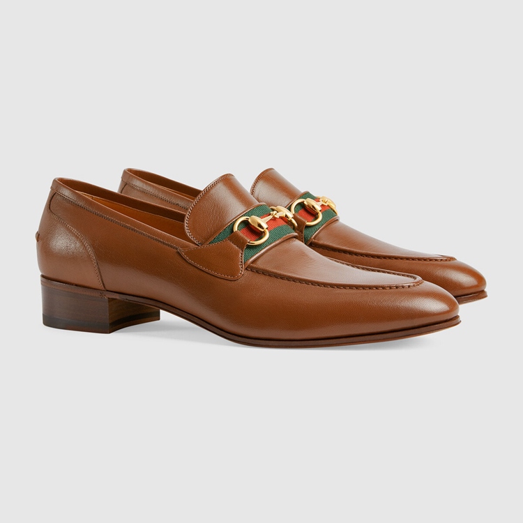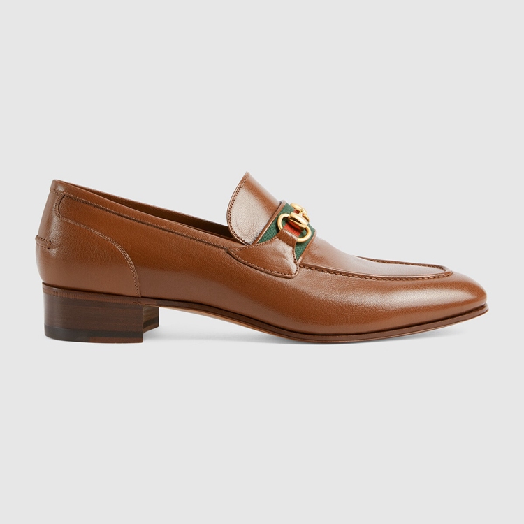 Style 655579 0G0P0 2870An Emblematic Gucci silhouette, The brown leather loafer is completed by The House’s Horsebit hardware and The Web stripe in green and red. Symbols and shapes from The archives appear throughout The latest collections, paying tribute to The origins of The brand.