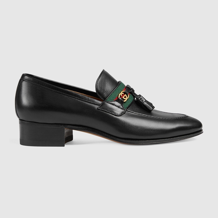 Style 624316 1W610 1066 Crafted from smooth black leather With a slightly elongated toe, This loafer combines traditional details like The tassel, With House elements— The Web stripe and shiny Interlocking G hardware. Pieces With versatile ways to wear and style embrace each person who is Part of The House’s individual spirit.