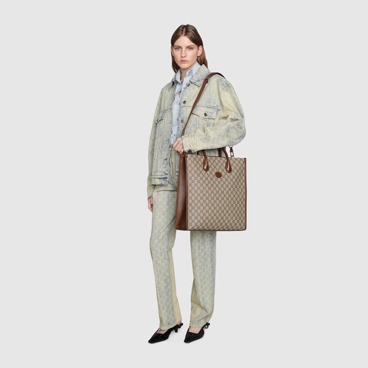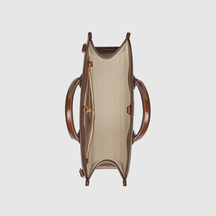 Style 674155 92THG 8563 The Interlocking G has remained One of The most symbolic codes of The House since its introduction. The distinguishing emblem appears as a leather detail atop This medium tote. Completing The design’s logo feel, The style is Crafted from monogram canvas.