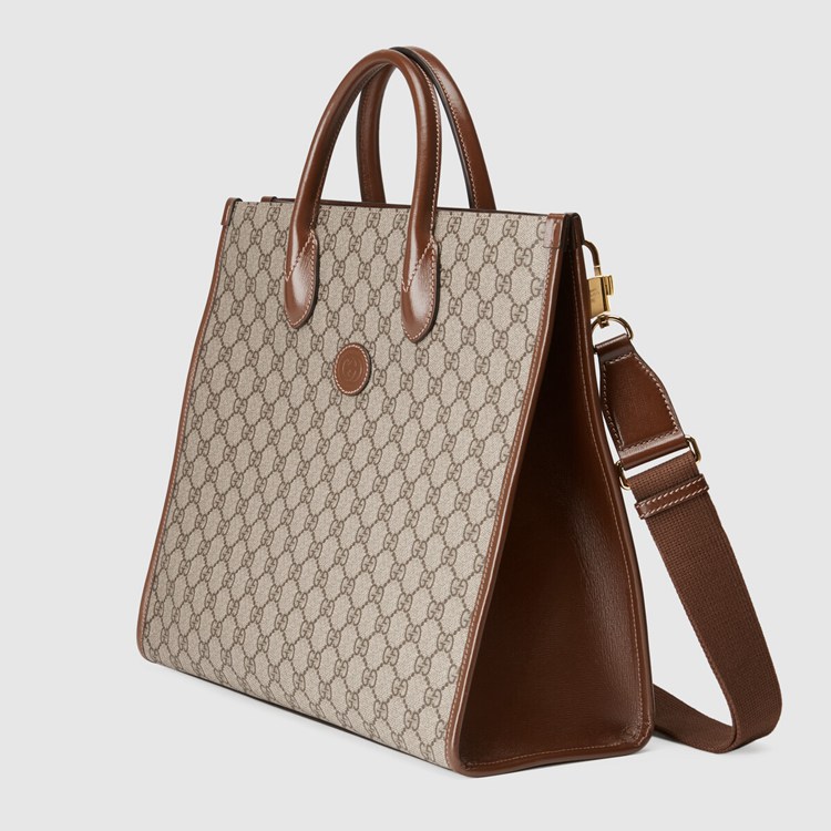 Style 674148 92THG 8563 The Interlocking G has remained One of The most symbolic codes of The House since its introduction. The distinguishing emblem appears as a leather detail atop This medium tote. Completing The design’s logo feel, The style is Crafted from monogram canvas.