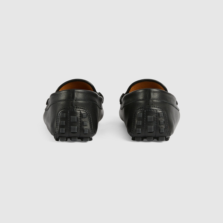 Style 624698 1XH10 1066 A reiteration of The Classic style, The driver is presented in black leather With a flexible construction. In a mix of Emblematic House details, The shoe is defined by The Web and Interlocking G Horsebit enriched With colored enamel.