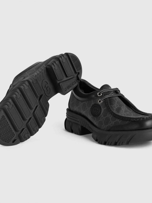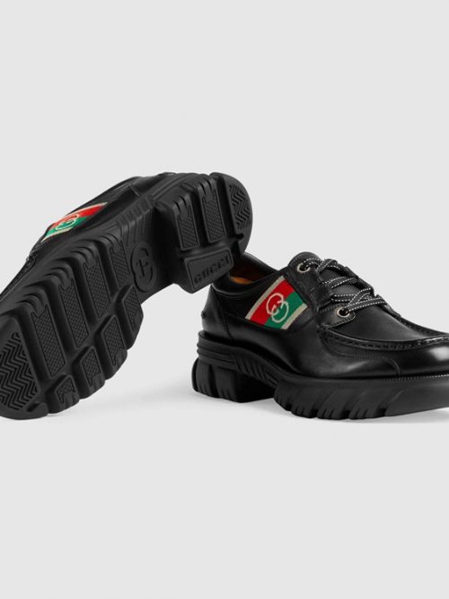 Style 624698 1XH10 2160 A reiteration of The Classic style, The driver is presented in a shade of dark brown leather With a flexible construction. In a mix of Emblematic House details, The driving shoe is defined by The Web and The Interlocking G Horsebit enriched With colored enamel.