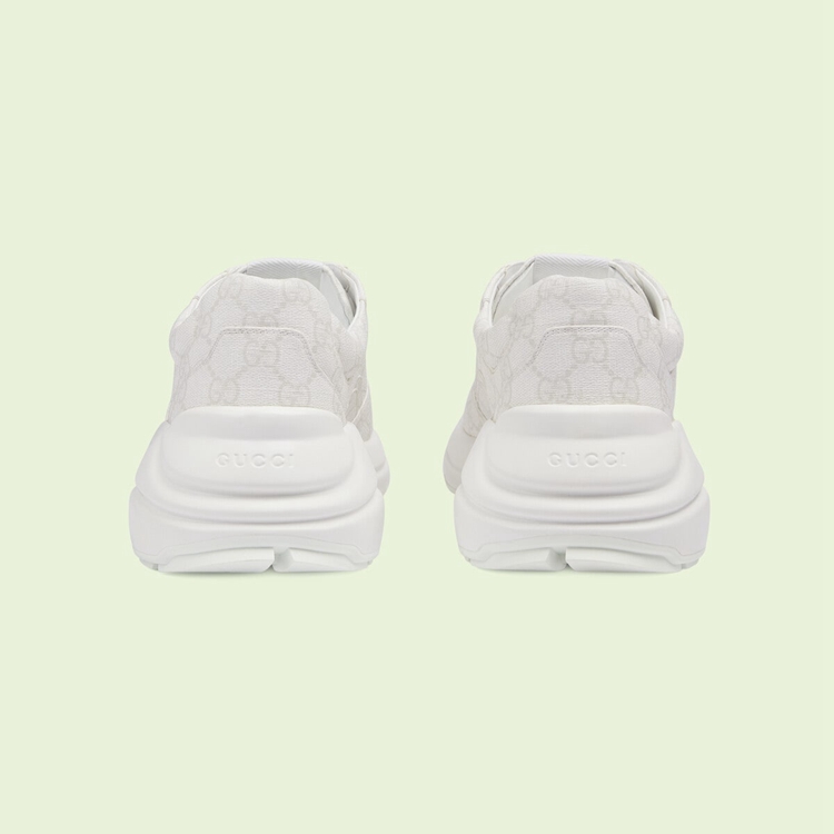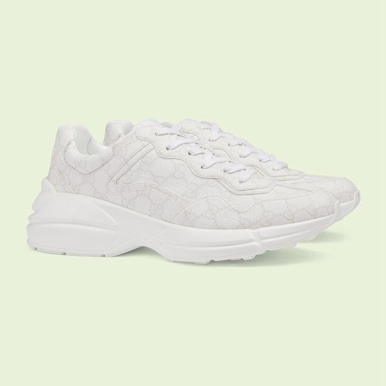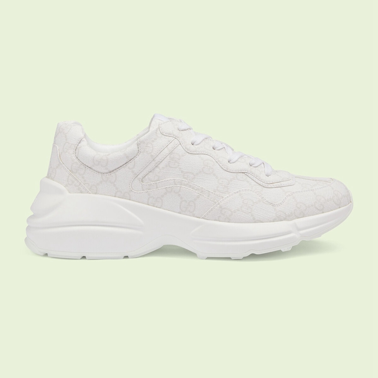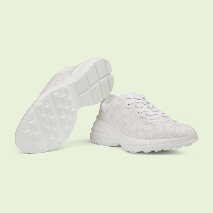 Style 702104 KGD00 9000Building on its historic origins, GG Supreme is introduced in New colors and atop unexpected styles For The Gucci Love Parade collection. With a low environmental impact, The canvas has come to The front of each collection decade after decade to become a hallmark of The House. Here, This Rhyton sneaker is Crafted from The material in a minimalist shade of white.