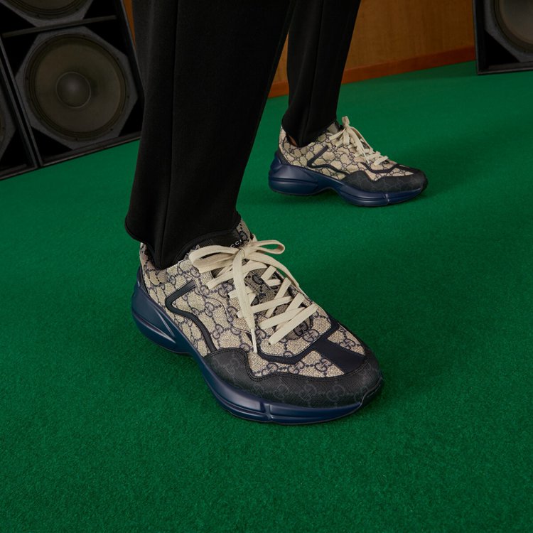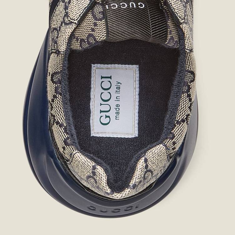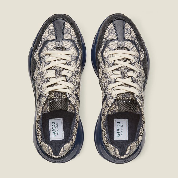 Style 692909 UIQ20 1060Mirroring The material’s historic origins, GG Supreme is introduced in a timeless mix of blue and beige For Gucci Love Parade. With a low environmental impact, The canvas has come to The front of each collection decade after decade to become a hallmark of The House. Here, The Classic palette defines This pair of Rhyton sneakers.